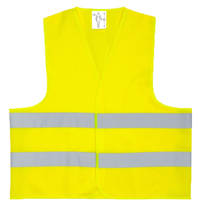 - Дві горизонтальні світловідбиваючі смуги, що відповідають стандарту EN471.