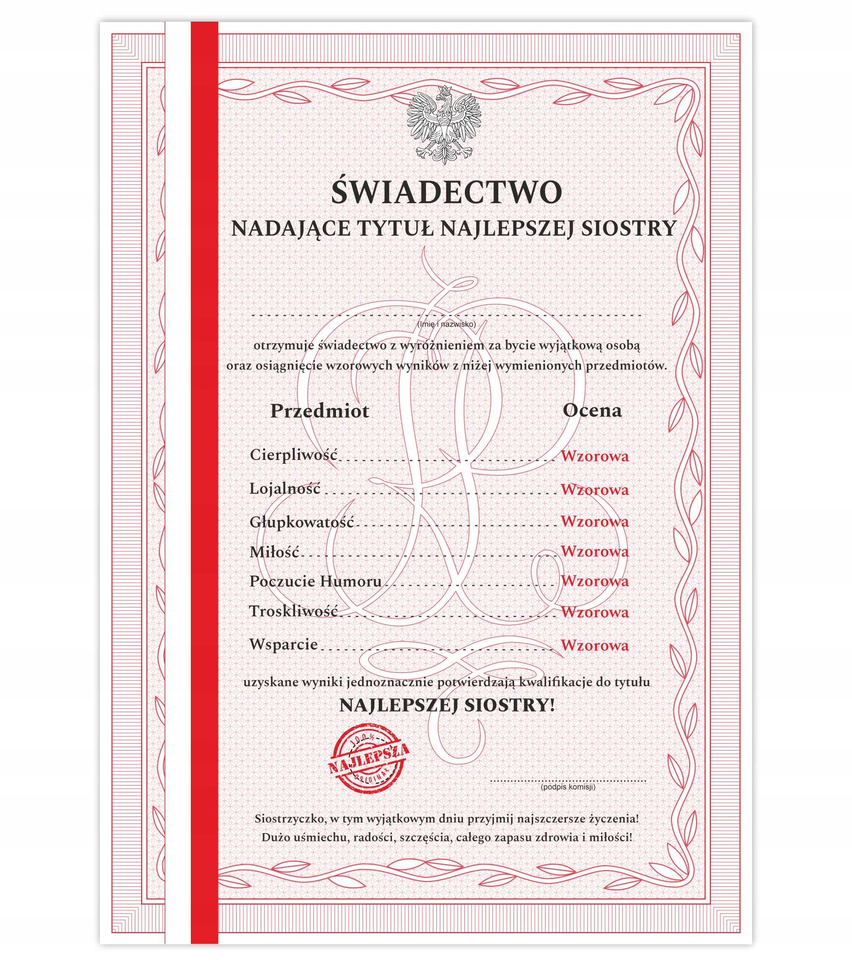Унікальний і цікавий вигляд диплома, що нагадує справжнє свідчення, - це чудовий різноманіття подарунка для вашої сестри для дітей, і для дорослих!