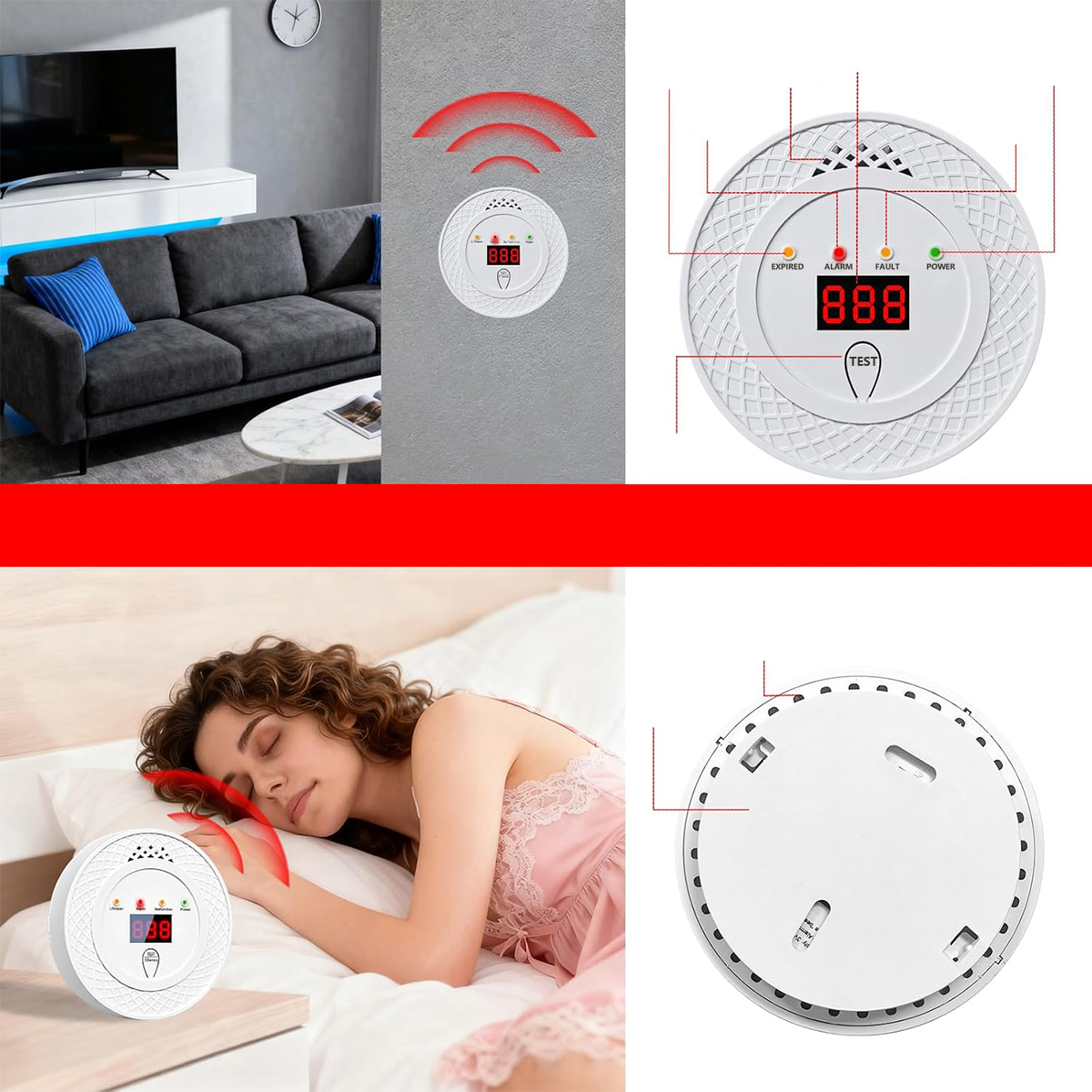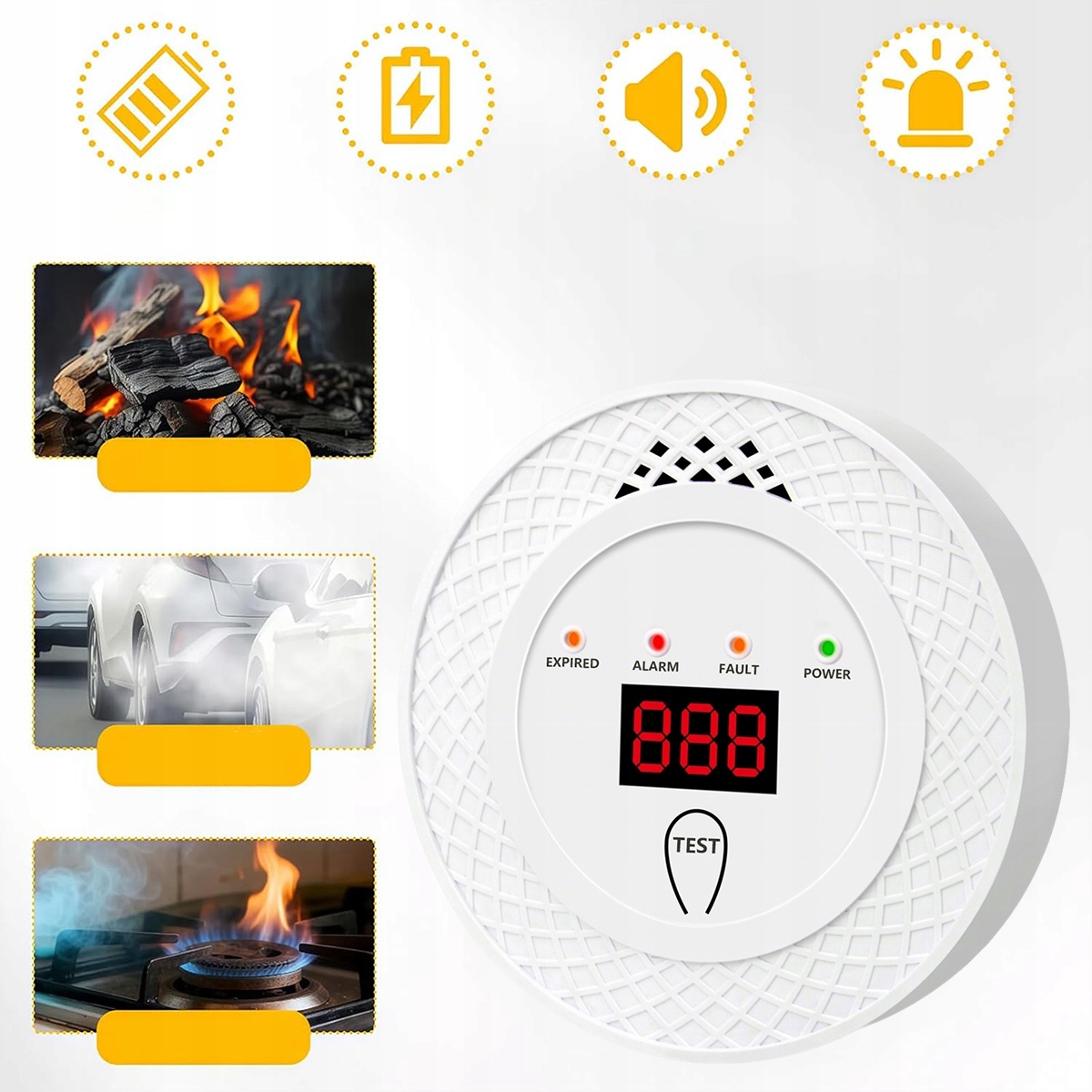 ✅ СИСТЕМА СИГНАЛІЗАЦІЇ: оснащена гучним сигналом, який лунає, коли виявлено небезпечний рівень CO, забезпечуючи раннє попередження.