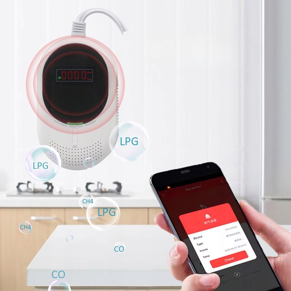 В одному пристрої ви отримуєте датчик чадного газу (окису вуглецю), природного газу та зрідженого газу, оснащений великим РК-дисплеєм і Wi-Fi-з'єднанням із додатком Smart Life / Tuya Smart.