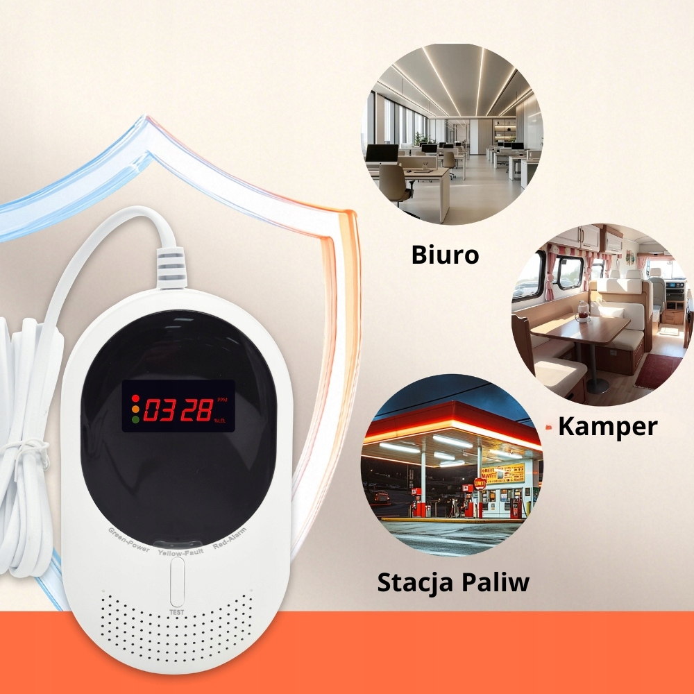 Виявляє чадний газ (CO), горючий газ (CH₄/LPG) і газ природний