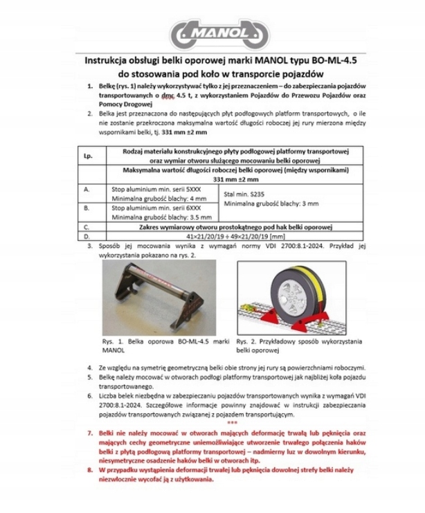 Частковий сертифікат VDI для даного виробу, щоб повністю відповідати вимогам стандарту VDi 2700-8.1: 2024 у дорожніх перевезеннях, ви повинні мати відповідні транспортні ремені, які відповідають стандарту, базу автомобіля та закріпити транспортний засіб належним чином відповідно до вказівок стандарту VDI 2700 Bi 8.1, наші колодки виконують свою роль протиоткатних упорів для коліс, використовуючи їх у будь-якому іншому обсягу або конфігурації виключно на ваш власний ризик. - оскільки вони можуть не виконувати свою роль з точки зору безпеки та вказівок стандарту VDI 2700-8.1: 2024. Термін дії сертифіката – 9 квітня 2028 р.