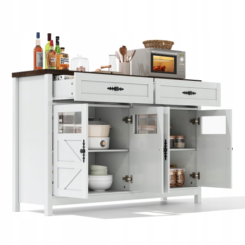 【Багатофункціональна тумба】Ця кухонна шафа має широкий спектр використання та може використовуватися як кавова вітрина в ресторані або як банкетний стіл. Ці меблі також можна використовувати як буфет на кухні або як тумбу під телевізор, вітрину, туалетний столик, книжкову полицю тощо в передпокої, вітальні та офісі.