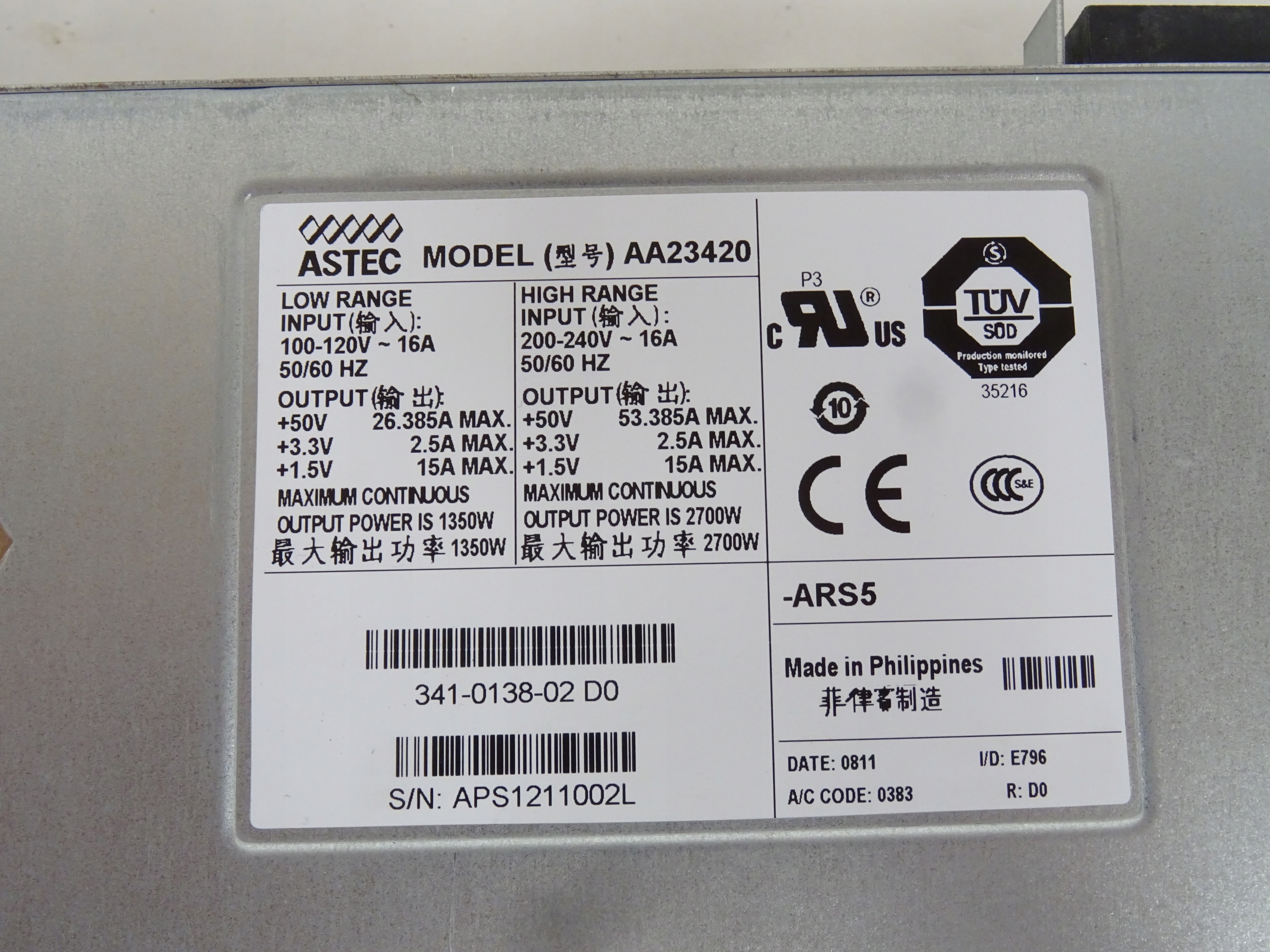 Серверний блок живлення Astec AA23420 PWR-2700-AC/4