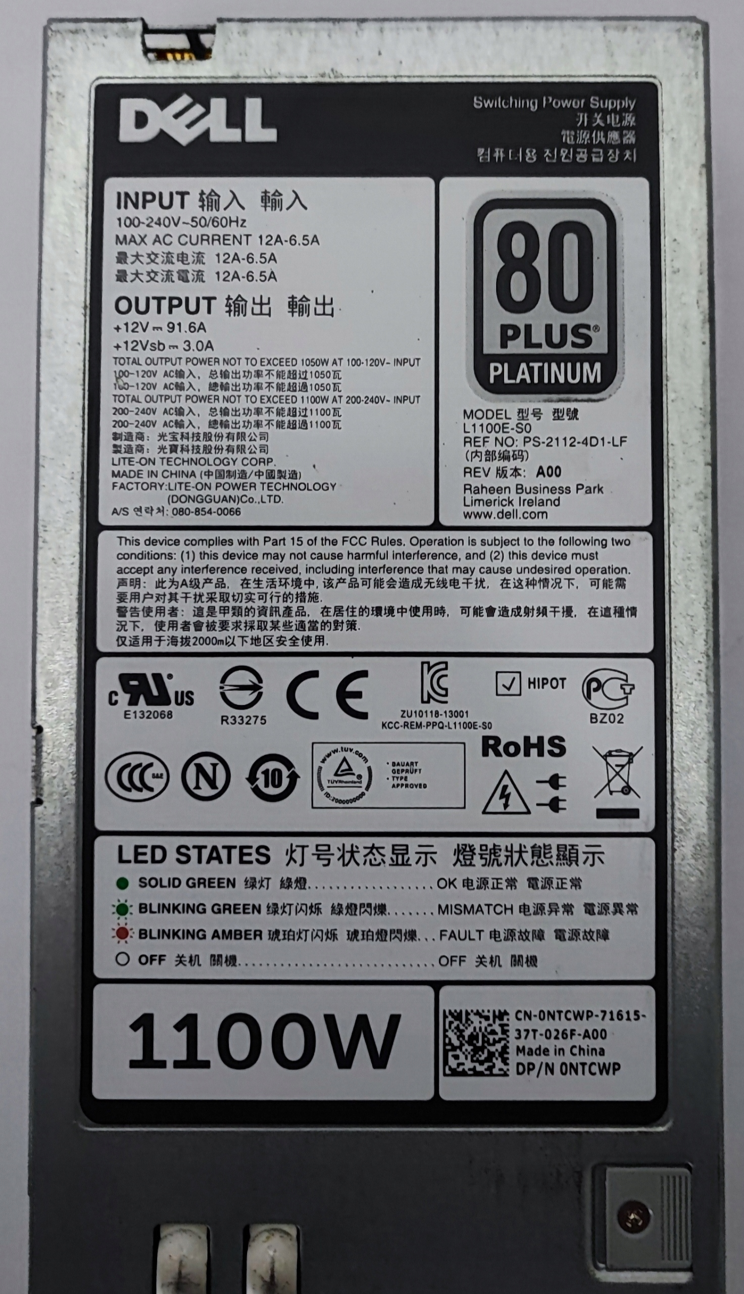 Серверний блок живлення DELL L1100E-S0, PowerEdge R520 R620 R720 R820