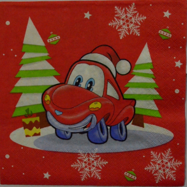 Серветка декупаж червоний іграшковий автомобіль і Різдвяна ялинка 1шт
