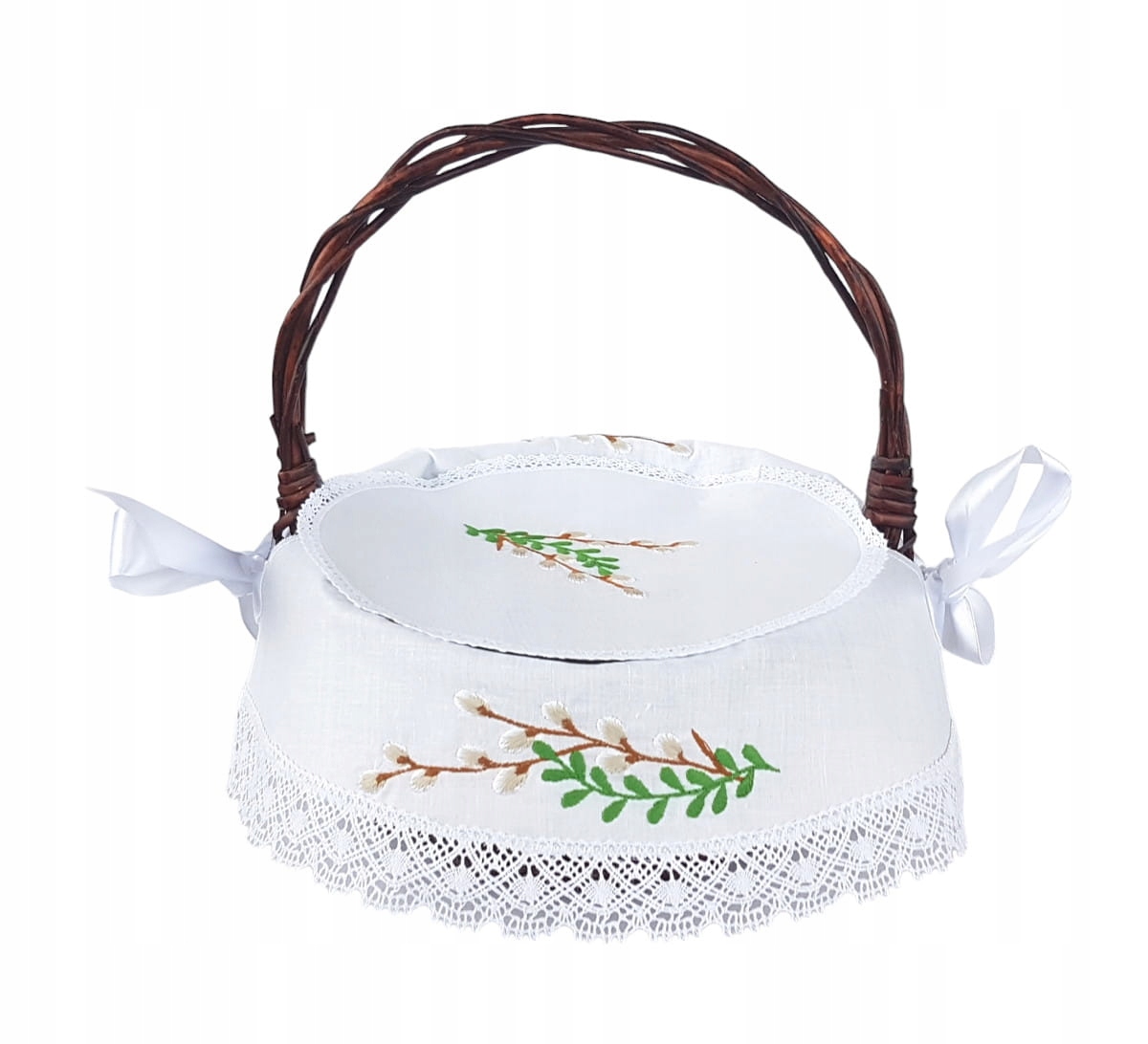 Серветки продаються набором: велика серветка зі стрічками для прив'язування до кошика та кришка. Обидві частини набору оброблені мереживом.