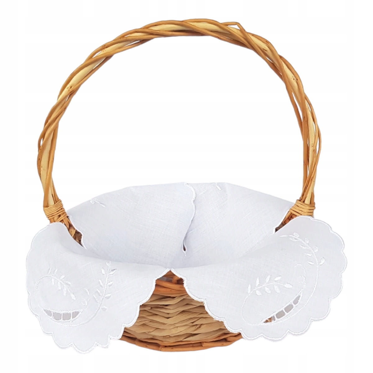 Вишита серветка-кошик, декорована народним майстром ажурною рішельєвською вишивкою.