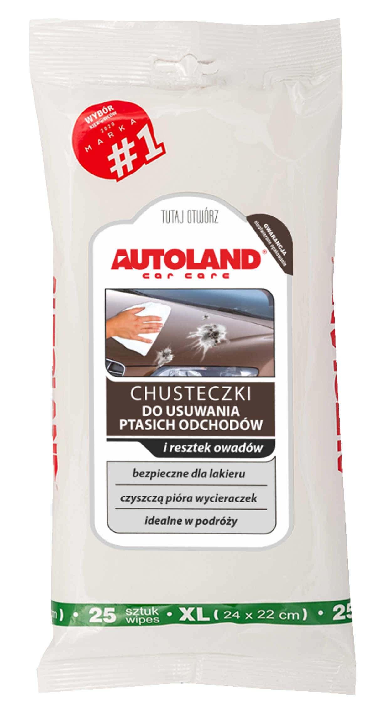 Серветки Autoland для швидкого та легкоговидалення агресивних пташиних екскрементів та комах з фарби автомобіля та вікон b> залишки комах. Вони не залишають плям, смуг, змін кольору або мікроволокон на очищених поверхнях. Їх також можна використовувати для очищення щіток склоочисників, щоб покращити та продовжити їх належну роботу.