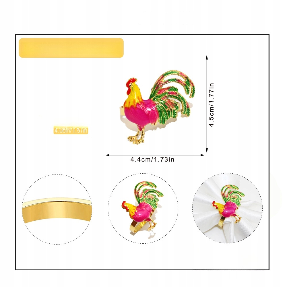 ✅ Кільця для серветок «Півень» — це не звичайні кільця для серветок. Вони виготовлені зі сплаву цинку, який є зносостійким. Візерунок півня складно створений, що робить їх унікальним і стильним доповненням до вашого обіднього столу. Вони легкі та прості у використанні, що робить їх ідеальними для щоденного використання.