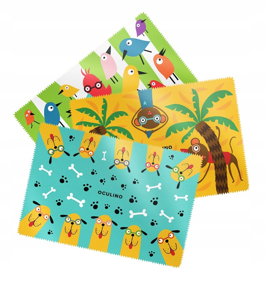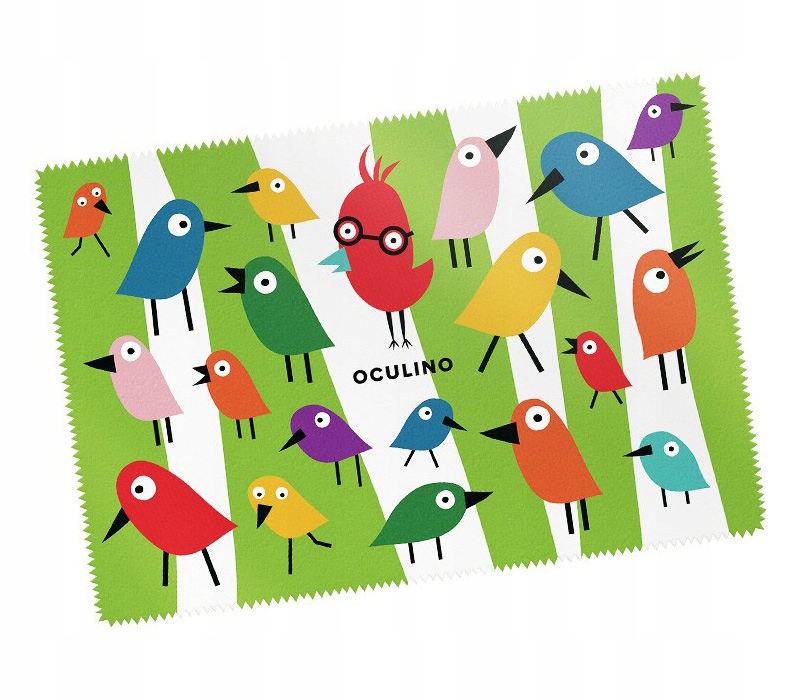 Барвиста тканина для дитячих окулярів з принтом птахи KOKO з мотиваційних книг Oculino. Ідеальне відсилання до відомої серії Oculino.