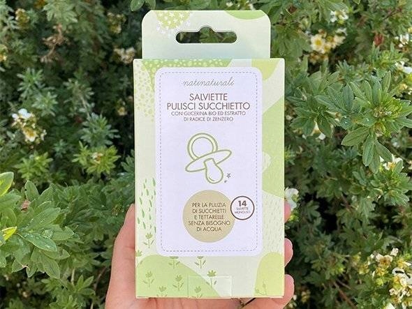 Дезінфікуючі серветки, розроблені спеціально для дезінфекції пустушок, а також інших предметів, які контактують з ротовою порожниною дитини, наприклад, прорізувачів, іграшок, пляшечок, столових приборів. Без запаху та запаху, що містить лише інгредієнти рослинного походження, отримані з органічного землеробства. Серветки зволожені гліцерином і екстрактом ромашки та імбиру, які мають дезінфікуючі та захисні властивості в ротовій порожнині та зміцнюють структуру ясен. Практичні серветки, ідеальні для подальших подорожей і щоденних прогулянок по дому.