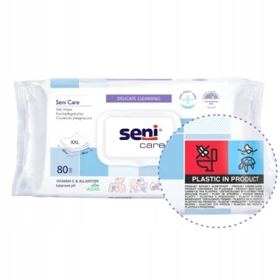 Ми гарантуємо найвищу якість усіх продуктів Seni Care. Серветки Seni Care з новою етикеткою не зазнали жодних змін. Нове маркування є результатом виконання РЕГЛАМЕНТУ КОМІСІЇ (ЄС) 2020/2151 від 17 грудня 2020 року до ДИРЕКТИВИ (ЄС) 2019/904 ЄВРОПЕЙСЬКОГО ПАРЛАМЕНТУ ТА РАДИ від 5 червня 2019 року щодо зменшення впливу певних пластикових виробів на навколишнє середовище , що визначає нетканий матеріал, який використовується у серветках, як пластик, і вказує, що продукти цього типу є одним із найпоширеніших відходів у морському середовищі.