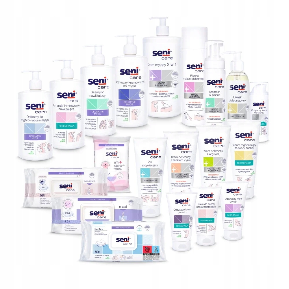 Догляд за людьми похилого віку, прикутими до ліжка або людьми з обмеженими можливостями, особливо з нетриманням сечі, вимагає підбору відповідних засобів для очищення та догляду, які подбають про суху чутливу шкіру, яка піддається дії подразнюючих факторів. Ослаблений епідерміс швидко дратується і висипається, а також може бути однією з причин появи пролежнів. Тому варто включити всі засоби догляду Seni Care до «Care Essentials», які надзвичайно корисні для очищення, догляду та захисту шкіри.