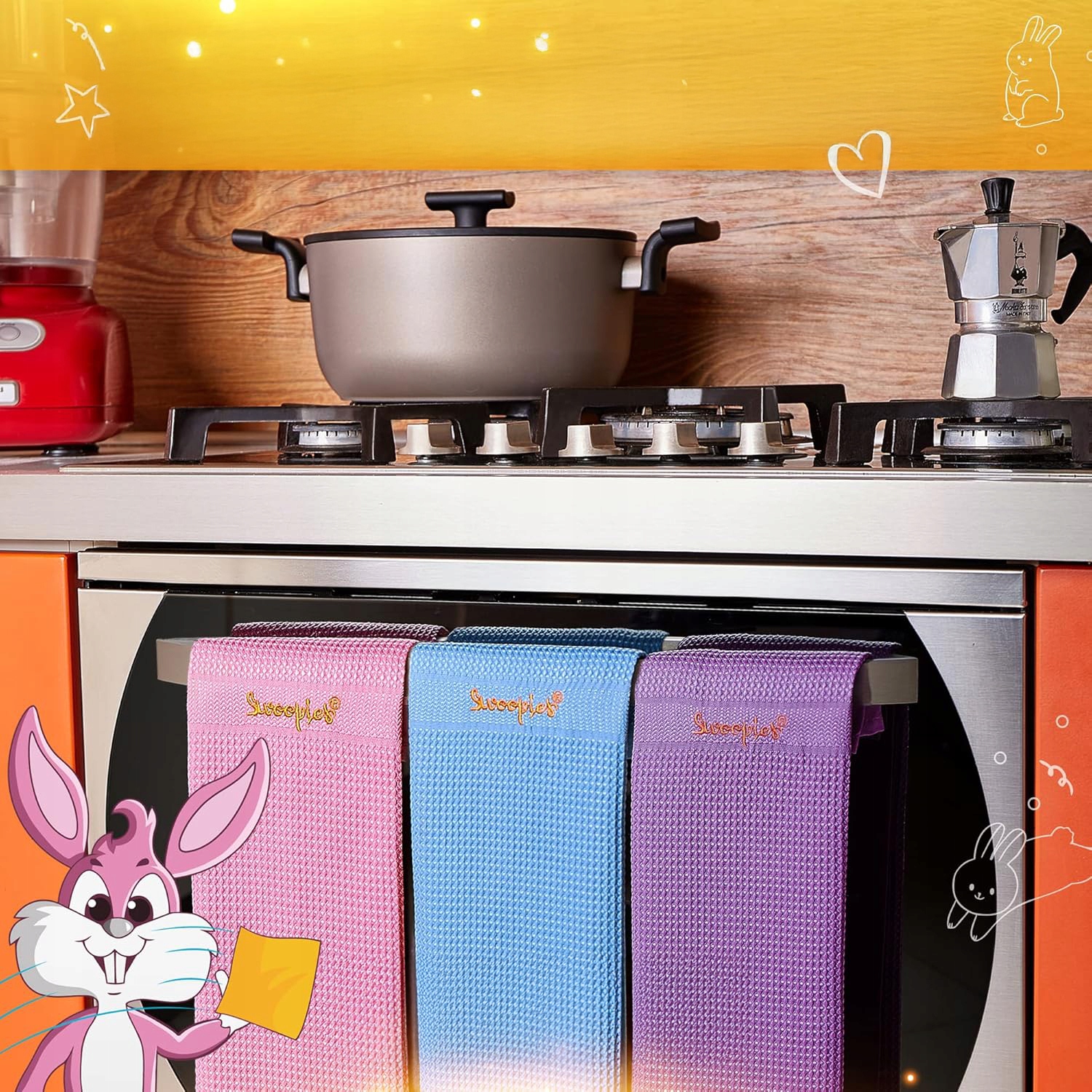 Тканини для чищення з мікрофібри Swoopies доступні в яскравих рожевих, блакитних і фіолетових відтінках. Вони не тільки виглядають шикарно та вишукано, але й можуть використовуватися в певних місцях у домі.