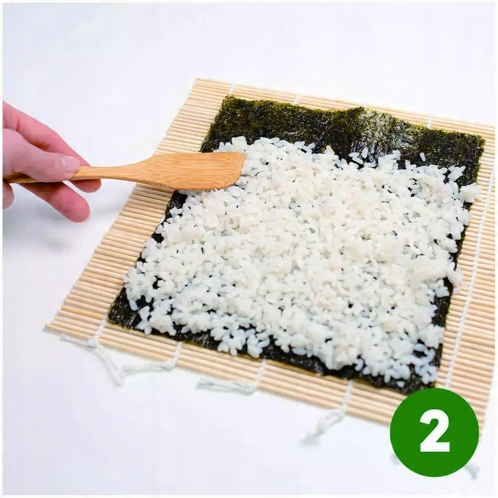 Перед використанням килимок, варто наклеїти харчову фольгу, щоб рис не потрапив у щілини між паличками.