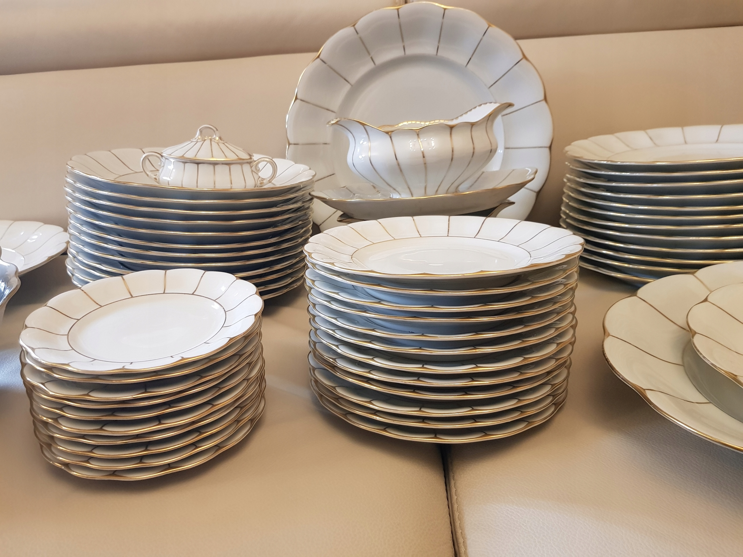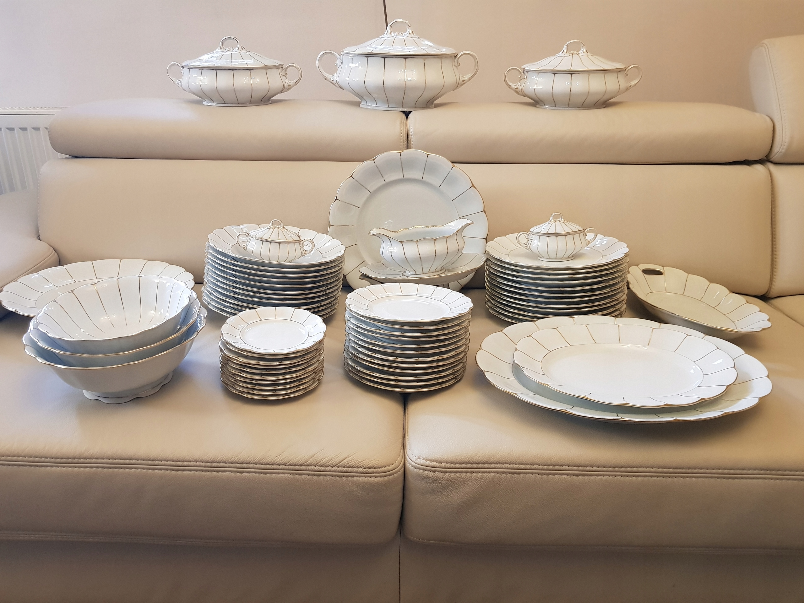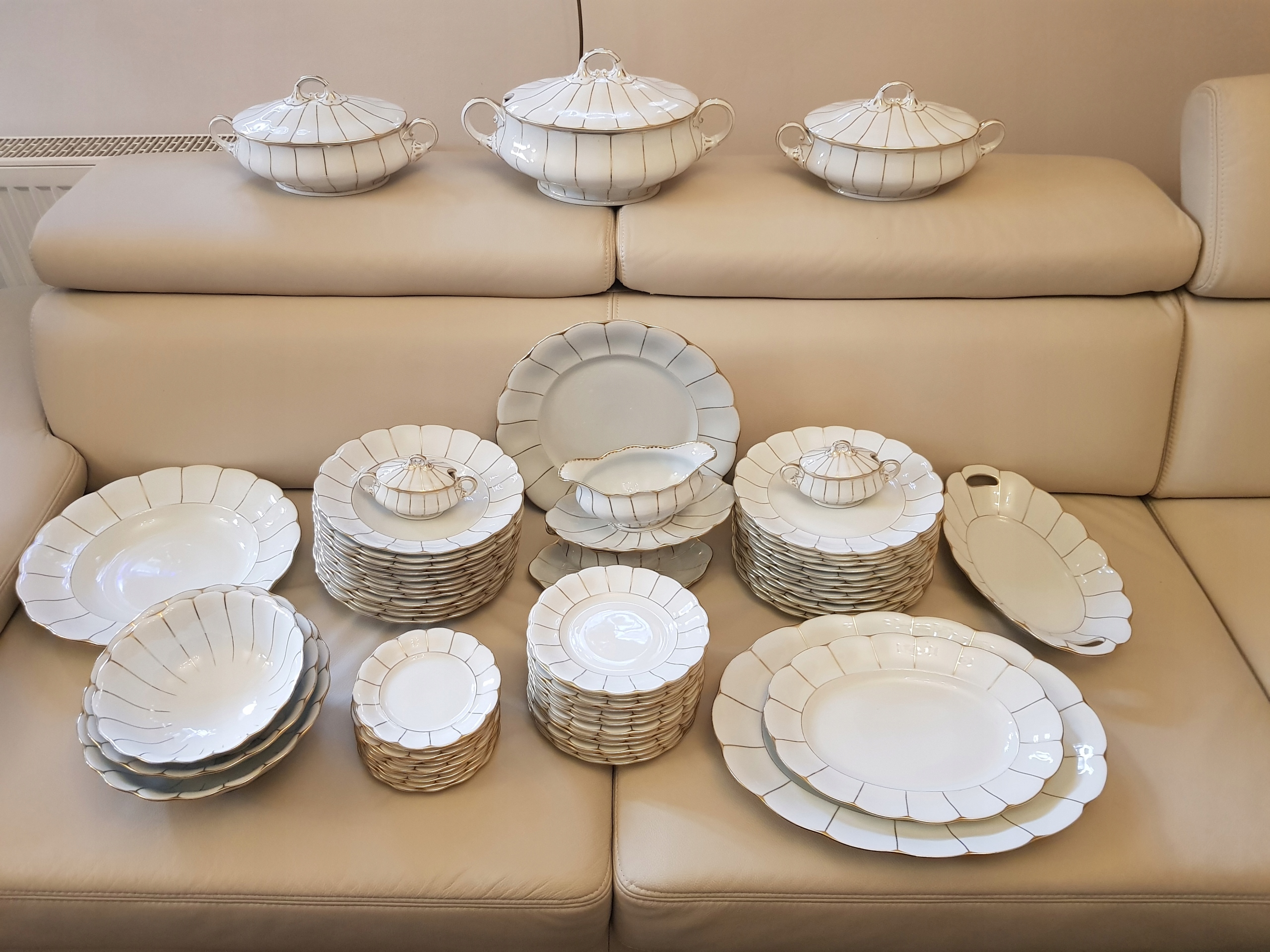 Предметом аукціону є столовий сервіз фірми Koenigszelt-Jaworzyna Śląska, модель Rosella.Порцеляна білого кольору, прикрашена золотими смугами.До набору входять: 3 вази, 12 супових тарілок, 12 обідніх тарілок, 12 десертних тарілок. , 10 тарілок закуски, 2 блюдця, 2 великі тарілки, 2 тарілки, 3 салатниці, 2 ємності для спецій, 1 кошик.