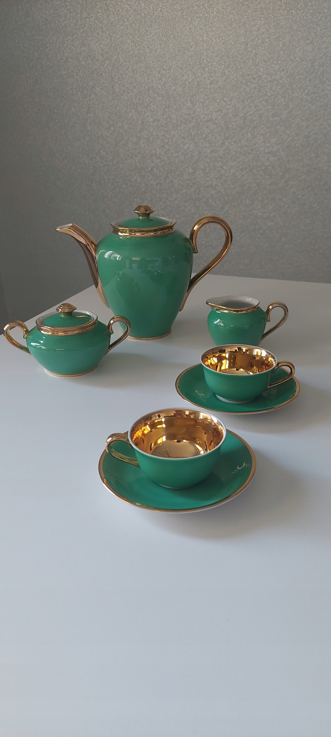 Набір складається з глечика висотою 15 см, молочника висотою 6 см, цукорниці висотою 7 см, двох чашок висотою 3,5 см. , діаметр наповнювача 7 см, дві тарілки для чашок діаметром 11,5 см.