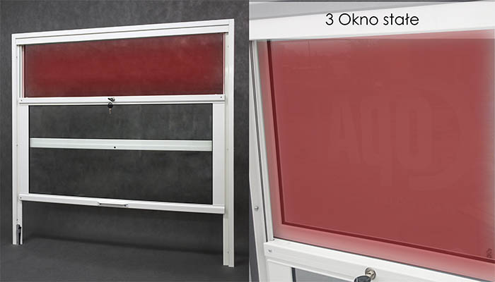 Вікно анодовано. У вікні використовується прозоре безпечне скло VSG 33,1 - 6,4 мм (можливе замовлення склопакетів товщиною 4 - 16 мм - як безпечне або загартоване скло, так і оргскло, полікарбонат або ДСП). Мінімальний розмір вікна становить 500x500 мм, а максимальний — 1200X1200 мм, які можуть бути збільшені постійними частинами. На вікнах з внутрішньої сторони встановлений байонетний замок, непомітний для людини зовні. Вікна з розсувною частиною вагою понад 7 кг мають пневматичний привід, що забезпечує вільне керування вікном. Крім того, вікно можна залишити в будь-якому відкритому положенні без необхідності його замикання.
