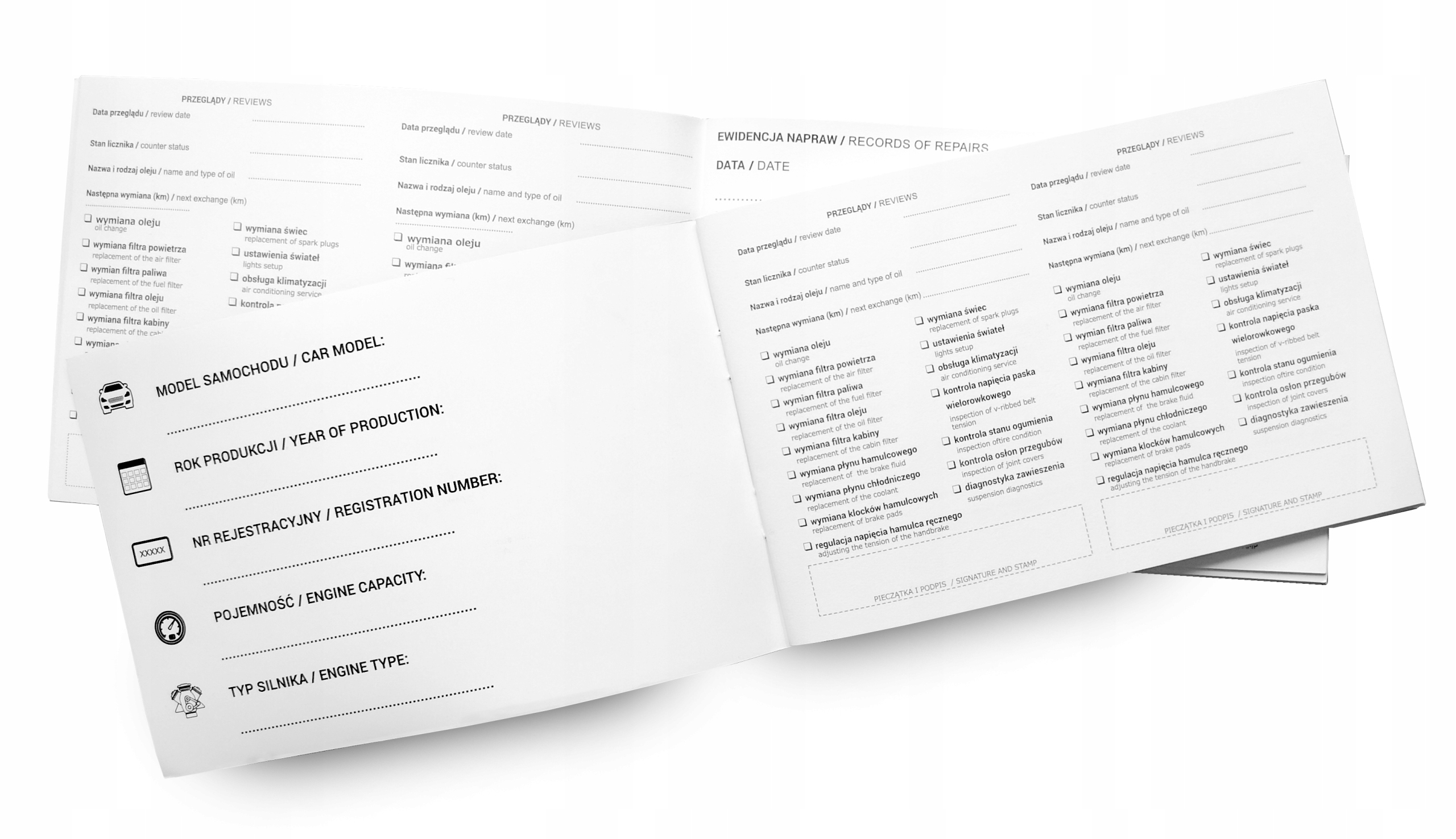 - ЩЕ БІЛЬШЕ СТОРІНОК сервісної книжки та СПЕЦІАЛЬНИЙ ШТЕМПЛОВИЙ ПАПІР товщиною до 140г!!! на якому марки не розмазуються і висихають за кілька секунд