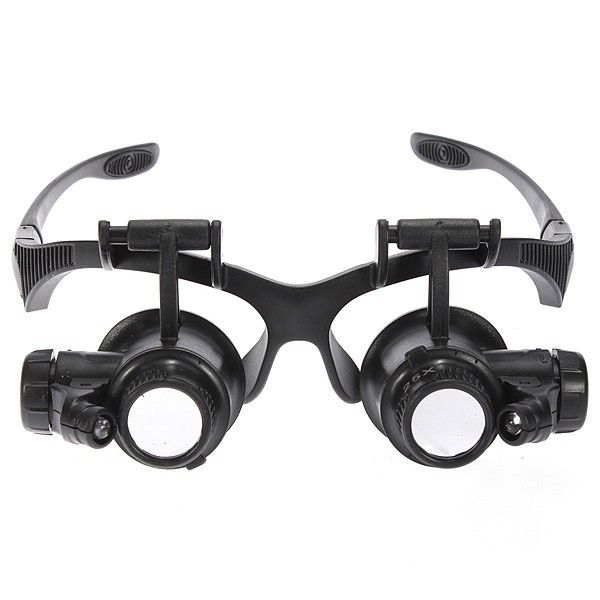Прецизійні окуляри виготовлені з високоякісного матеріалу. Мають два потужних вбудованих світлодіода, з можливістю регулювання кута освітлення. Робоча дистанція до 5 см від досліджуваного об'єкта.