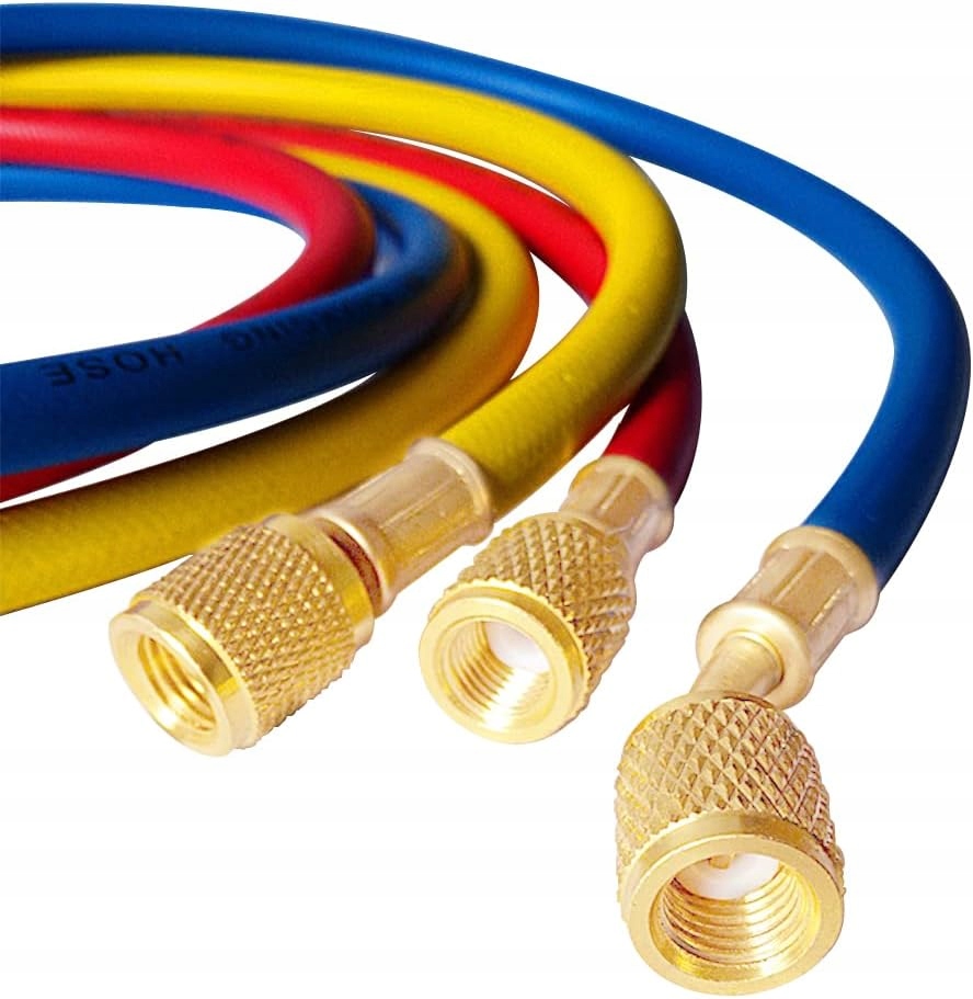 Шланги мають стандартні з’єднання, які використовуються для манометрів холодоагенту або станцій кондиціонування повітря.