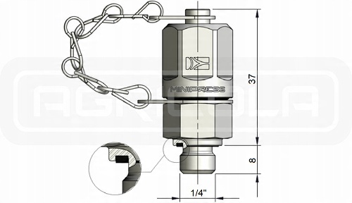 Нарізна кришка з ланцюгом забезпечує захист від погодних умов і герметизує з’єднання, коли вимірювальний набір від’єднано. Це рішення дозволяє залишати з’єднання назавжди, навіть коли машина знаходиться під тиском і вимірювальний набір від’єднано.