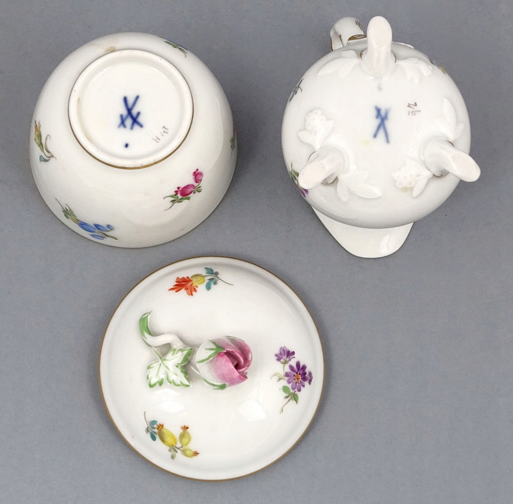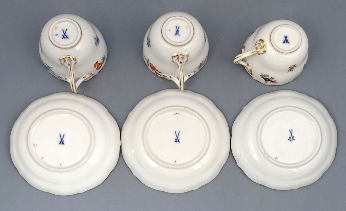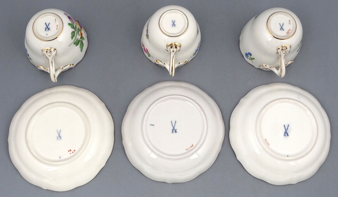 Снизу на кожному елементі, під глазур’ю, комплект підписаний знаками двох пересічних мечів. , Мейсен, середина 20 ст.