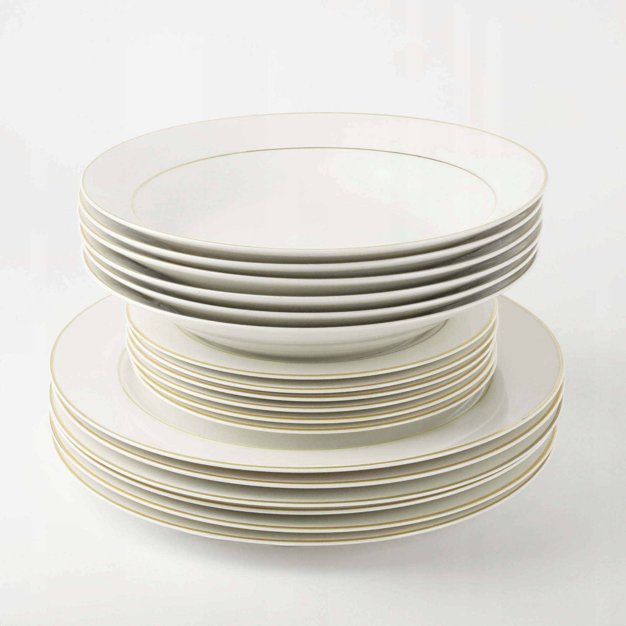 СЕРВІЗ ОБІДНИЙ, ФАРФОРОВИЙ НАБІР БІЛИХ ТАРІЛОК З ЗОЛОТОЮ СМУЖКОЮ НА 6 ПЕРСОН