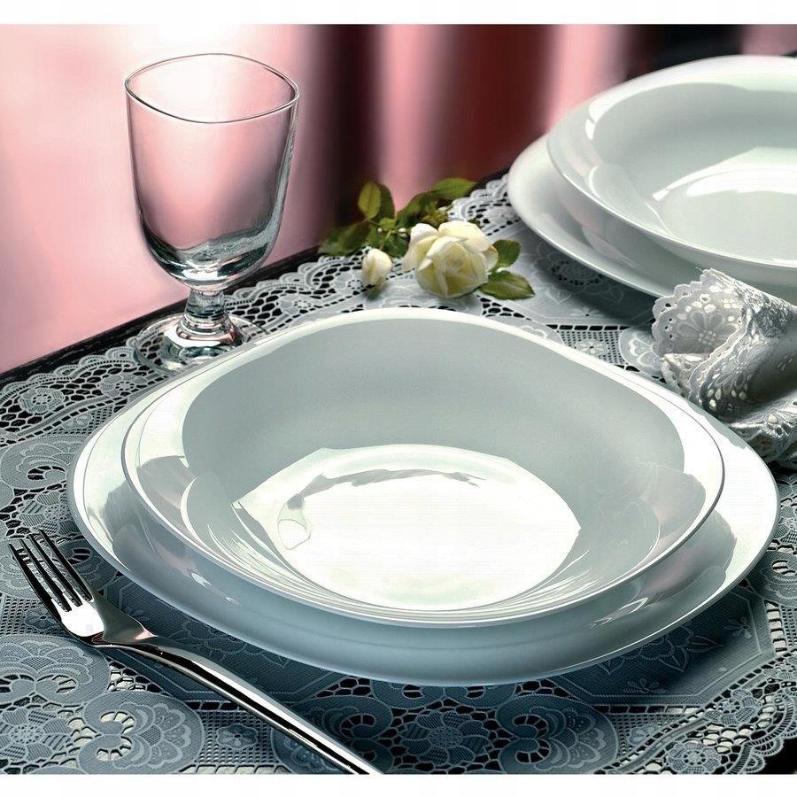 Сервіз в сучасному, елегантному виконанні. Класичний білий і мінімалістичний дизайн. Ідеально підходить для невеликих вечірок. Столовий набір виготовлений зі скла Opal Glass, стійкого до пошкоджень. Сервіс можна мити в посудомийній машині.