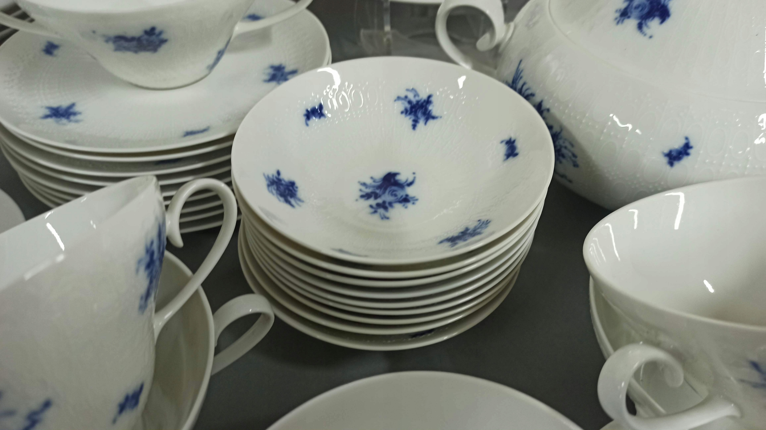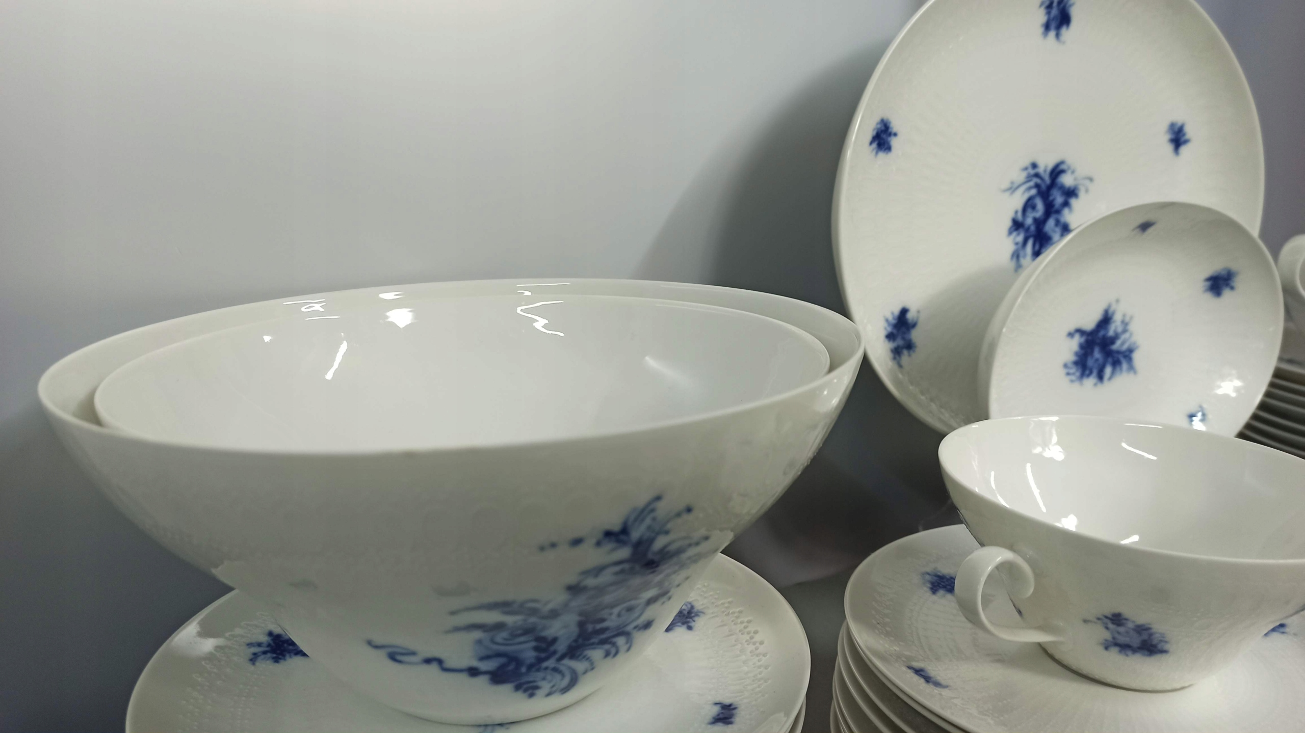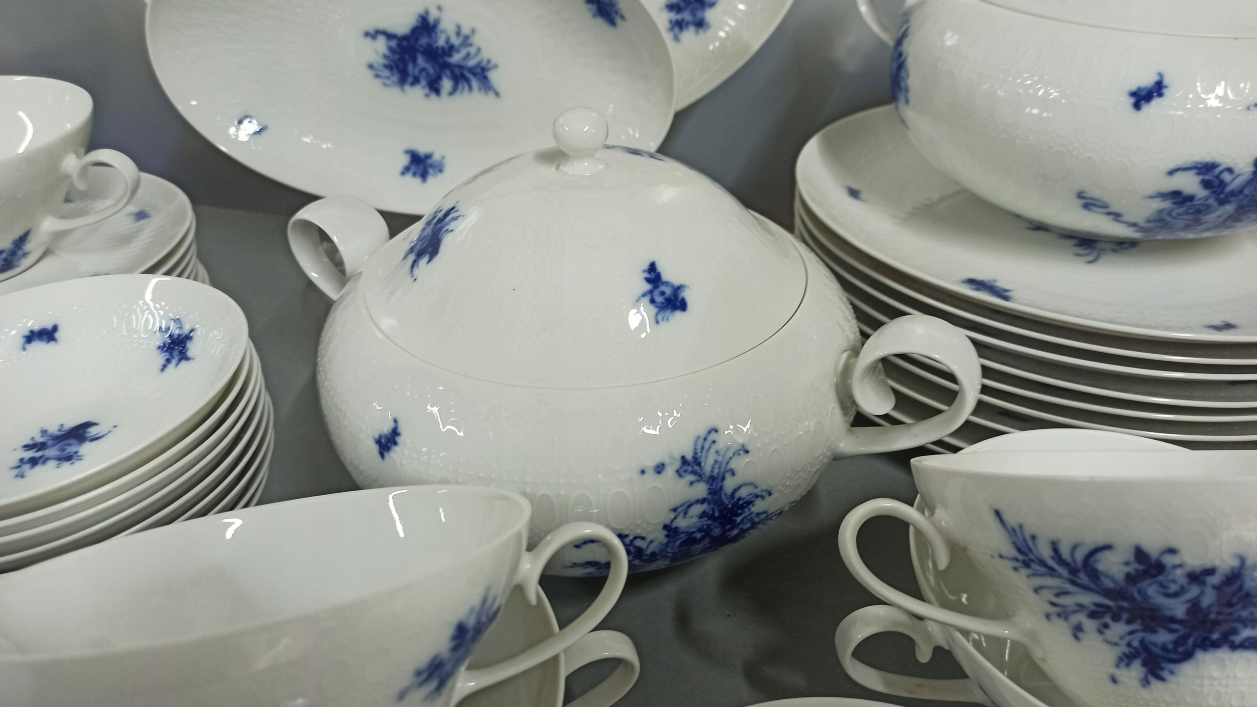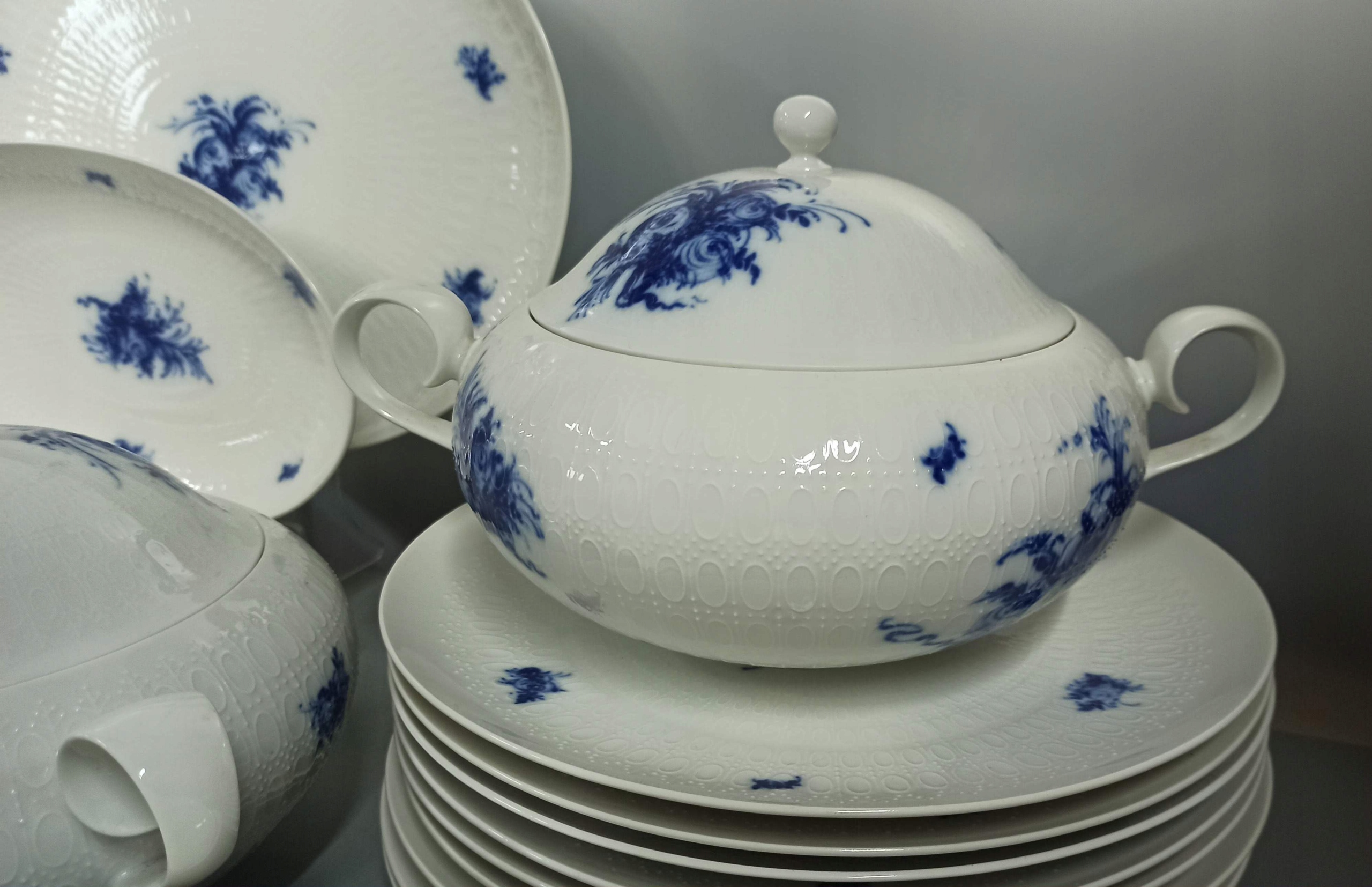 Біла порцеляна з рельєфною поверхнею з декором "Blaue Blumen".