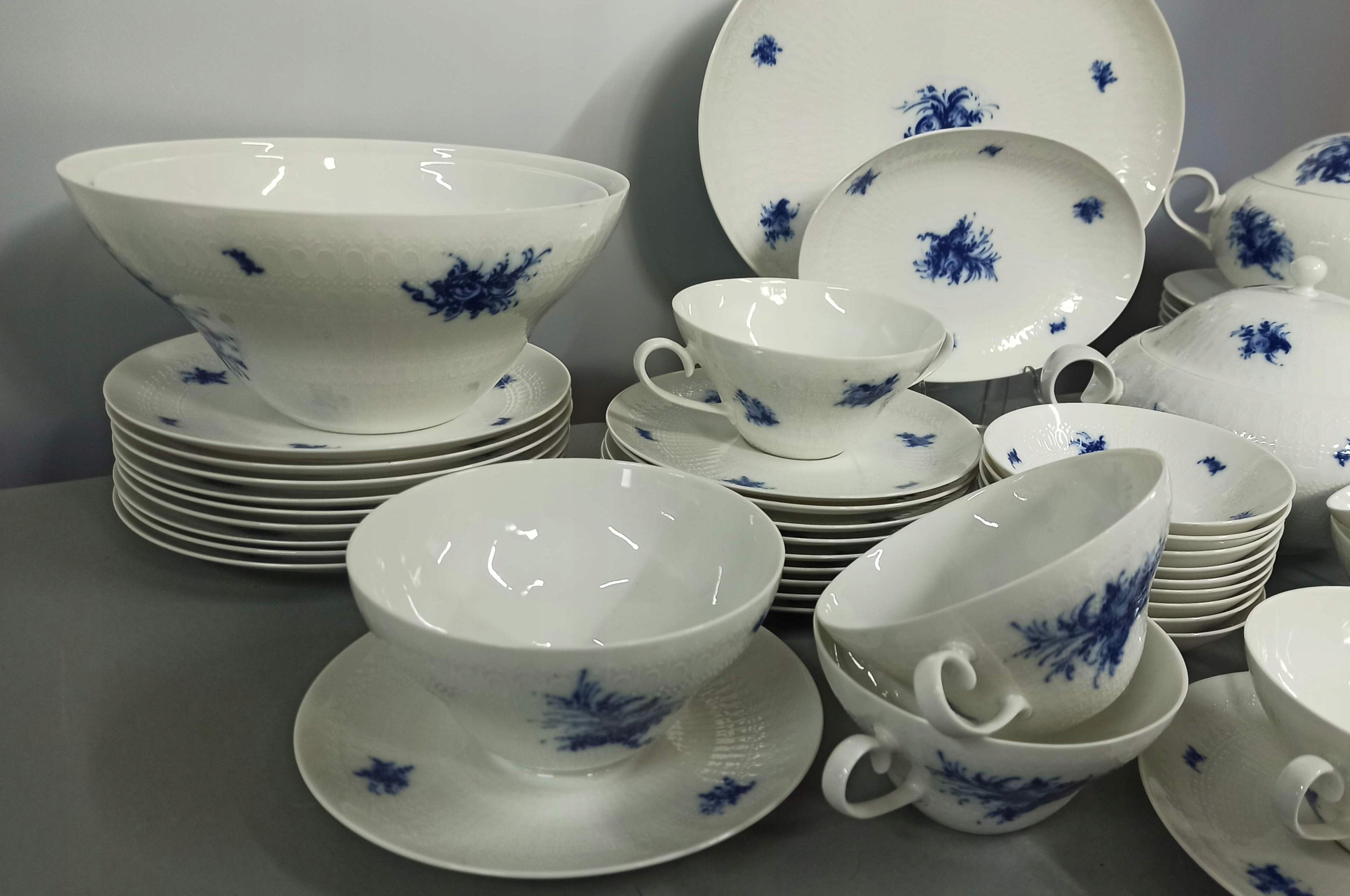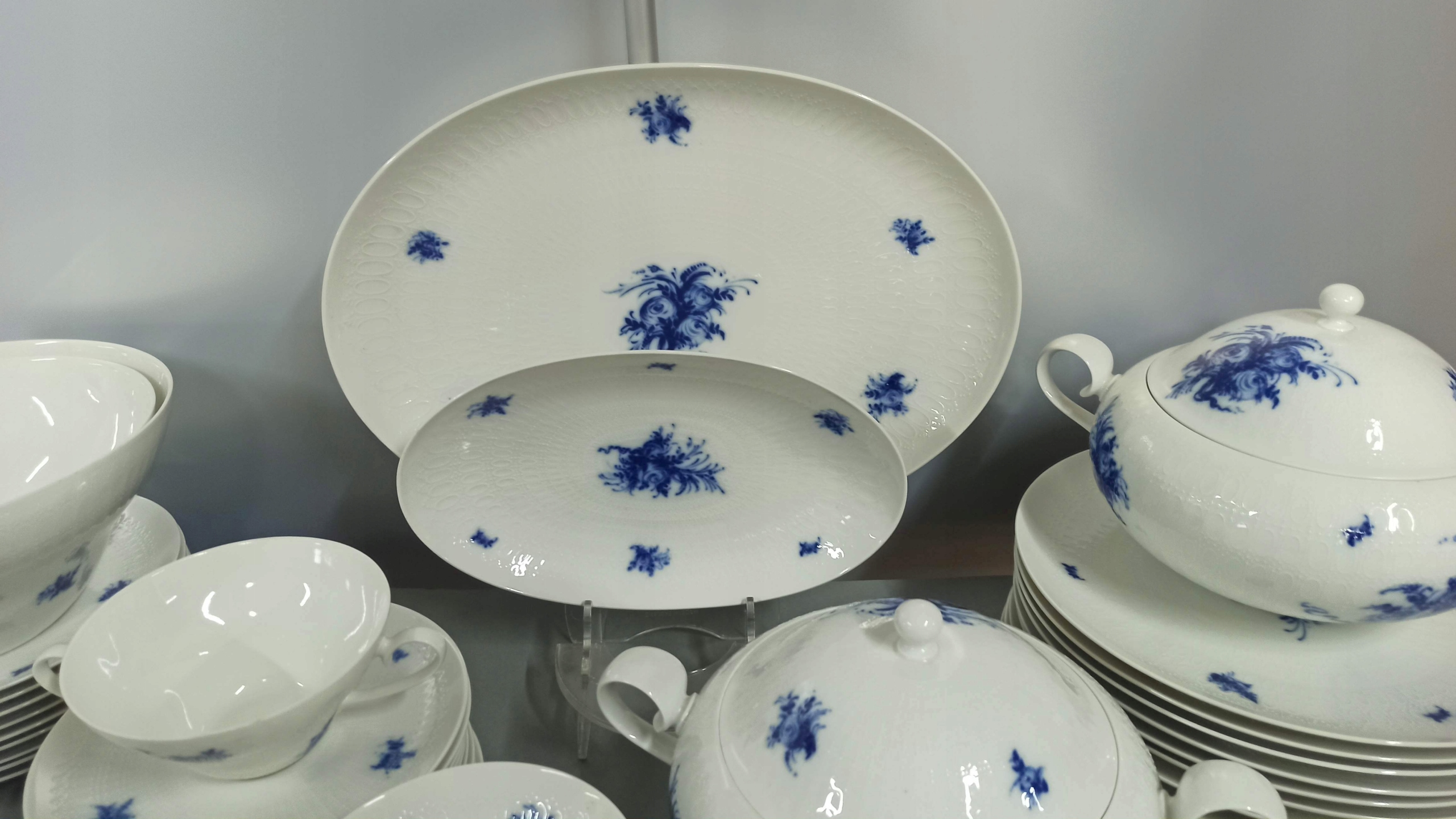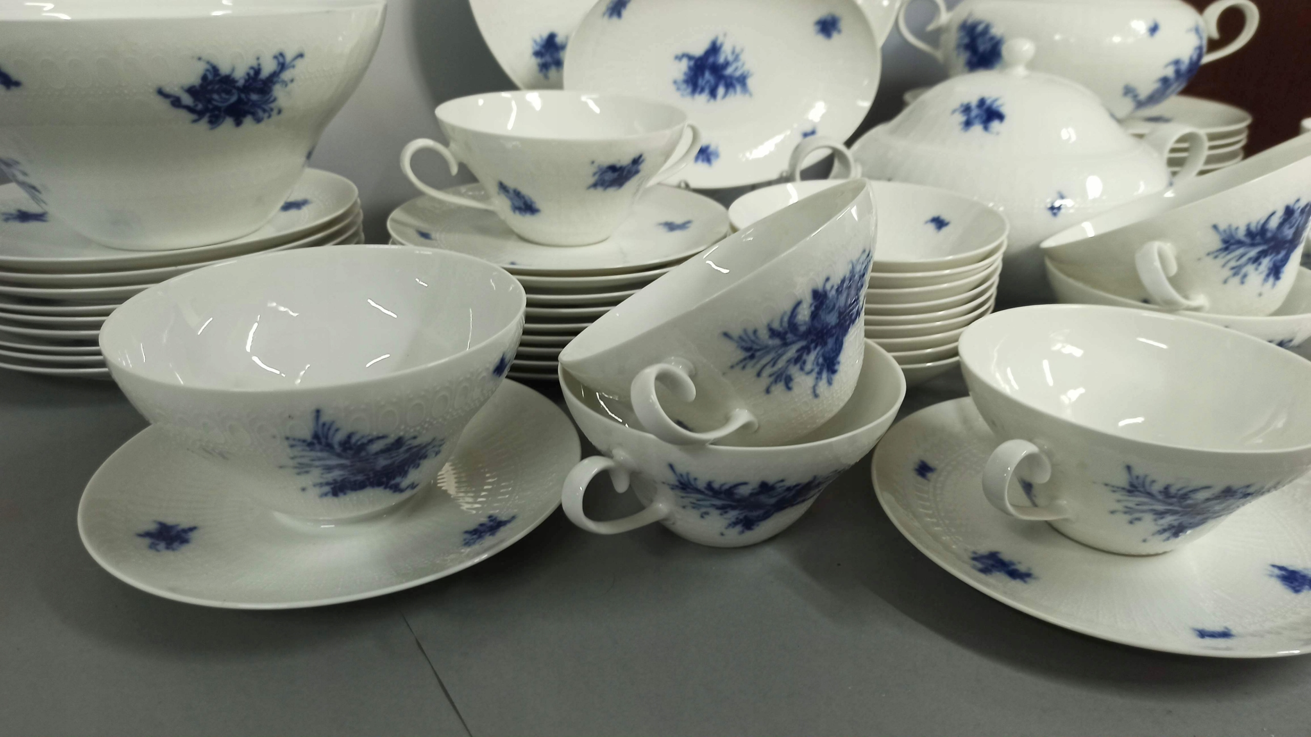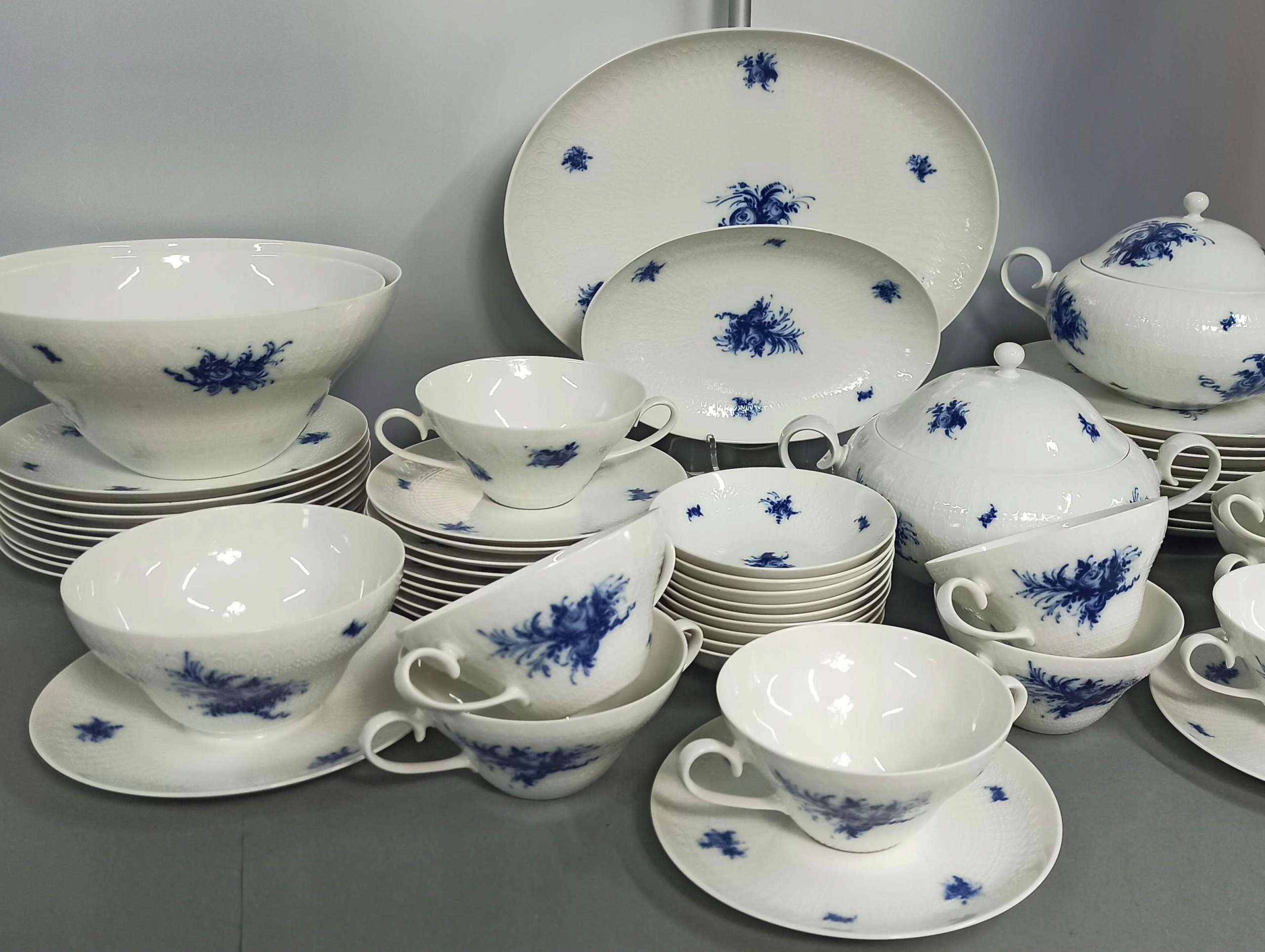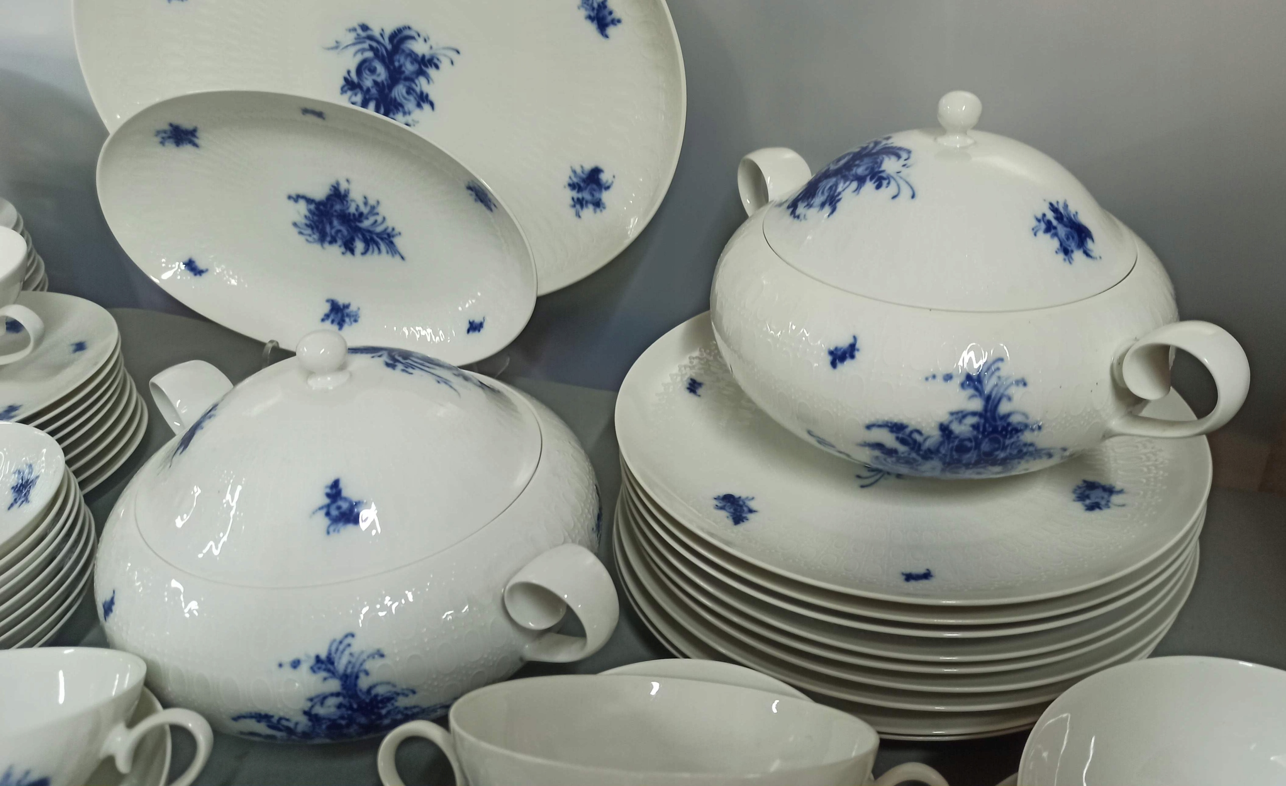 Біла порцеляна з рельєфною поверхнею з декором "Blaue Blumen".