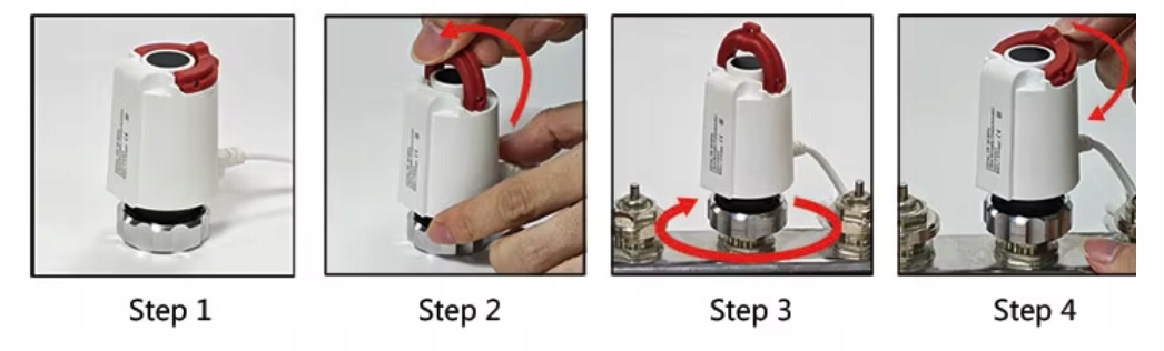 У приводі використовується латунна вставка, яка механічно переміщує штифт, на відміну від класичних приводів, які спираються на розширення воску або парафіну. Довговічність і помірний нагрів.