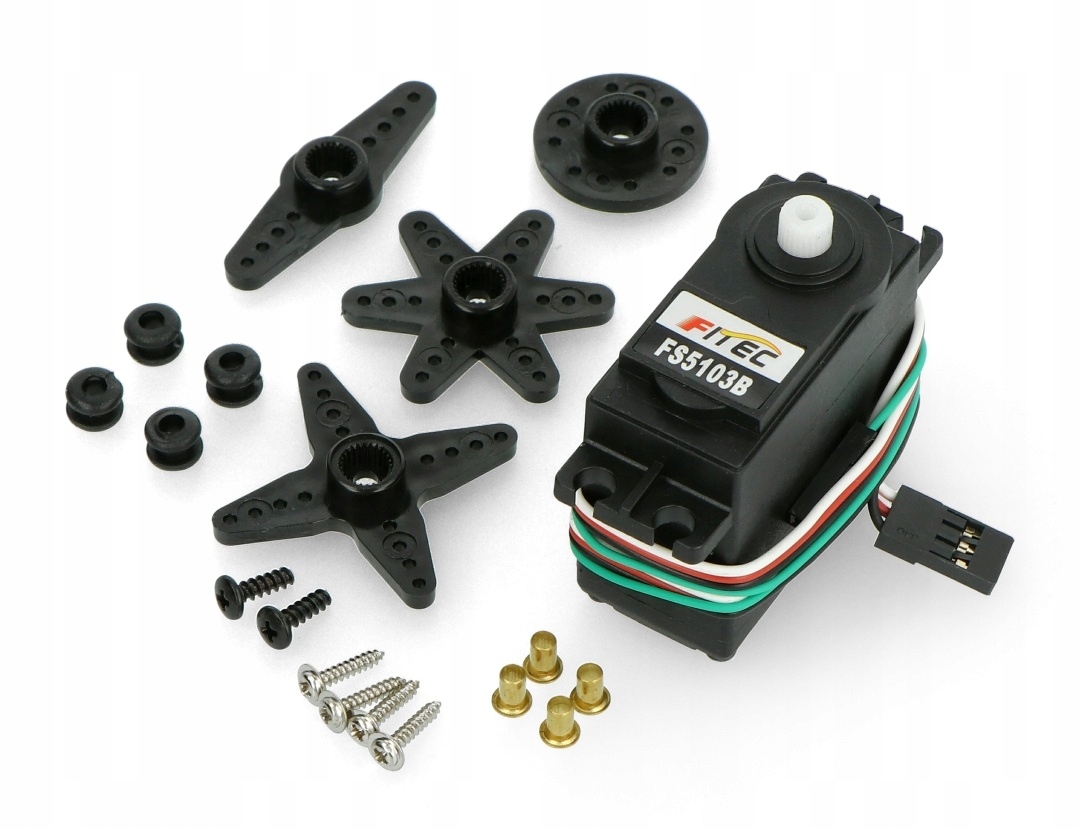Сервомеханізм Feetech FS5103B-FB, це спеціально модифікована версія аналогового сервоприводу FS5103, що забезпечує доступ до вбудованого потенціометра через додатковий зелений дріт, це рішення дозволяє безпосередньо вимірювати вихідний кут. Робочий кут становить від 0° до 180° в діапазоні імпульсів до 600 мкс до 2400 мкс.