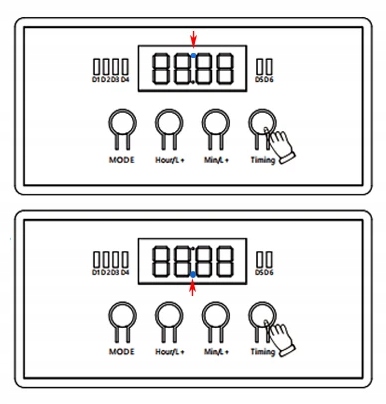 Перш ніж установлювати автоматичний режим, ви повинні спочатку встановити поточний час. Це можна зробити, довго натискаючи кнопку TIMING. Через кілька секунд дисплей почне блимати, і ви зможете встановити час.
