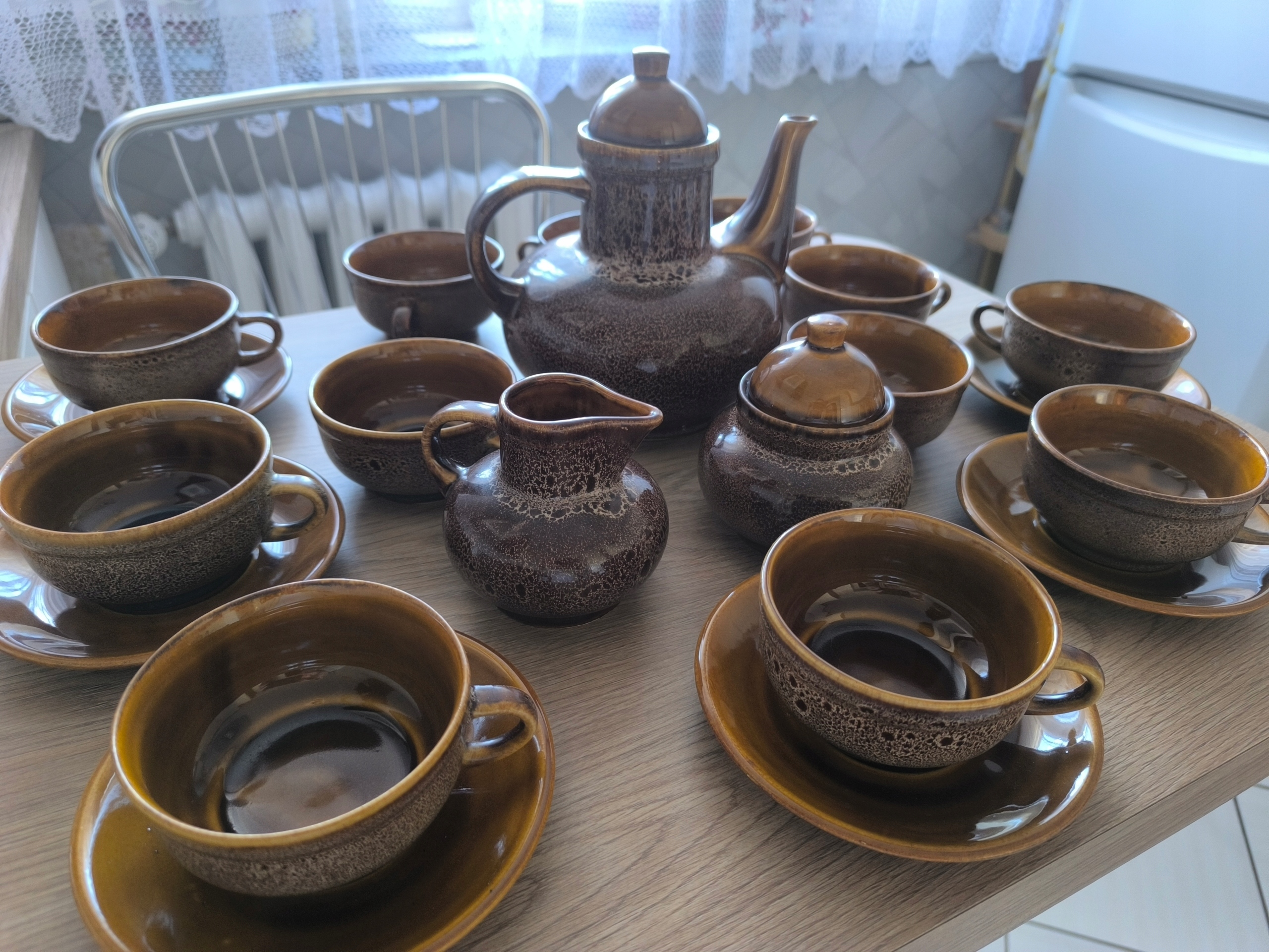 serwis kawowy NEFRYT Porcelit Mirostowice PRL + 6 dodatkowych filiżanek