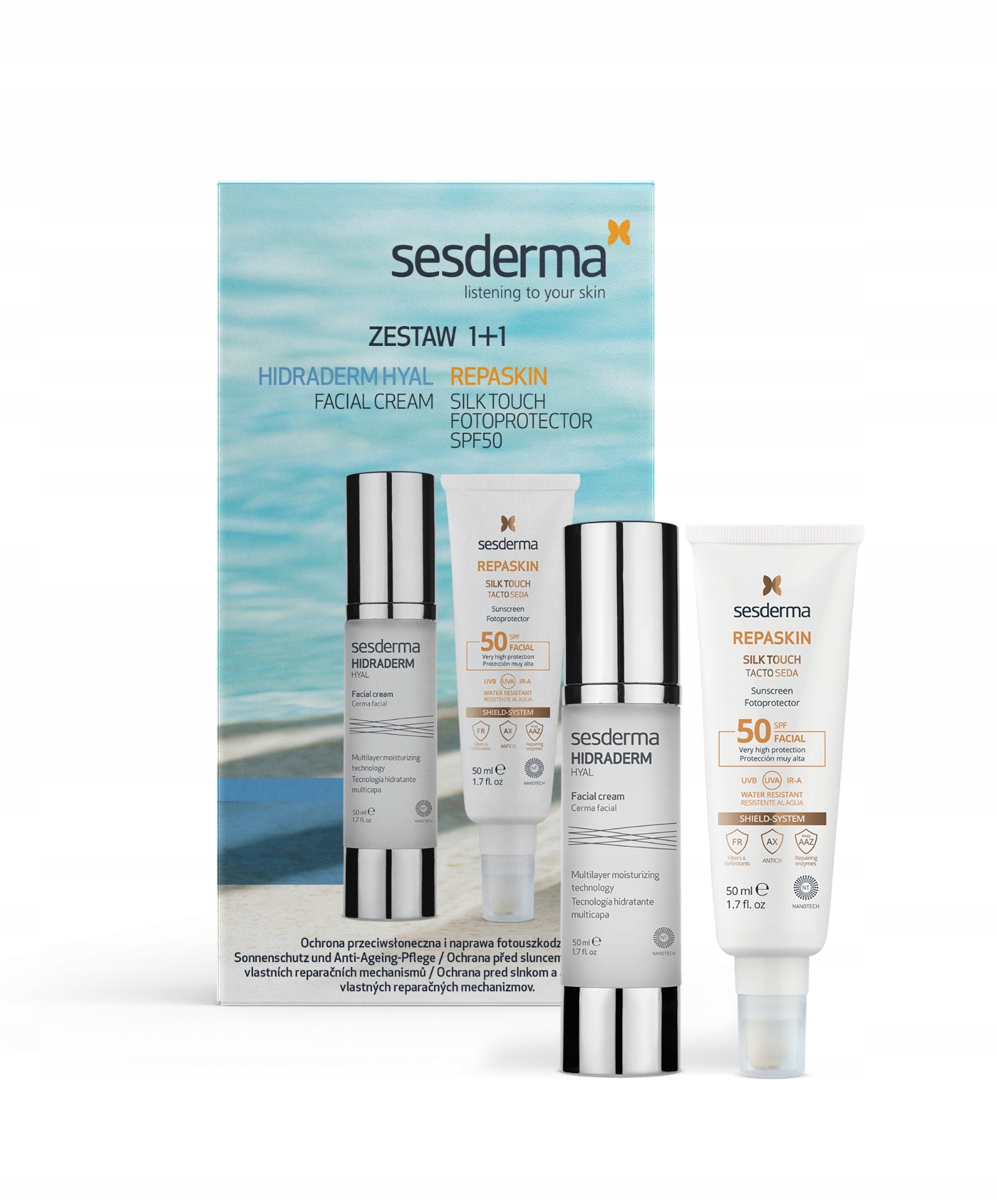 РЕПАСКІН Silk Touch SPF50 Cream SET 50 мл + HIDRADERM Hyal Face Cream 50 мл 2024