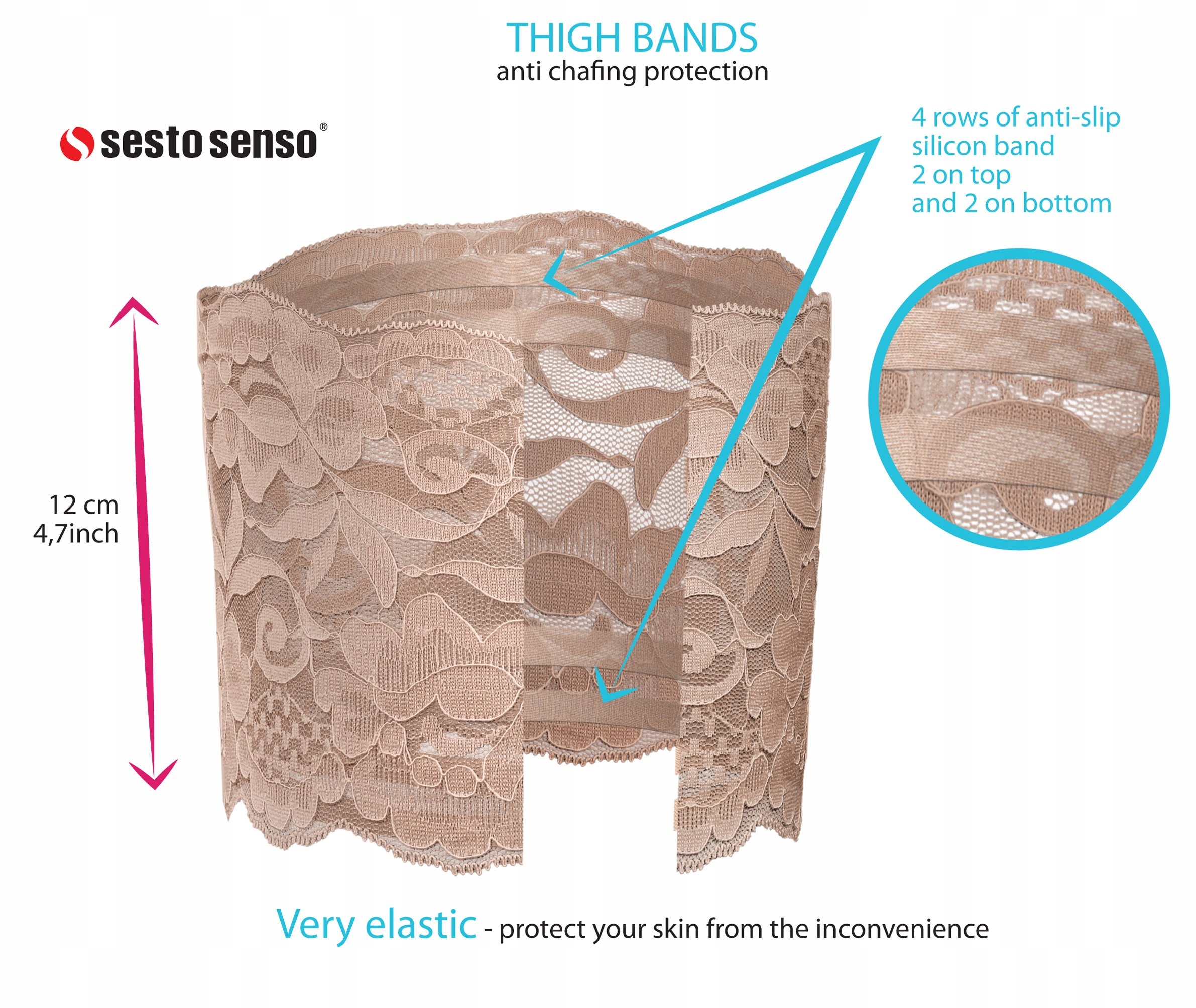 Sesto Senso САМОПОДІМНІ МЕРЕЖИВНІ ПОВ'ЯЗКИ НА СТЕГНА Бежеві M 60 - 65 см