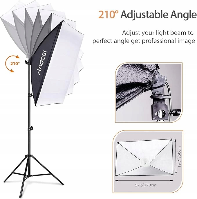 - 【50 х 70 см. Велика гнучка софтбокс】 Велика софтбокс з білим тканиною дифузора забезпечує ідеальне рівномірне освітлення; з кадром E27 для прямої установки світлодіодів; Softbox можна повернути на 210 °, щоб забезпечити оптимальний кут освітлення та зробити ваші фотографії та відео більш професійними.