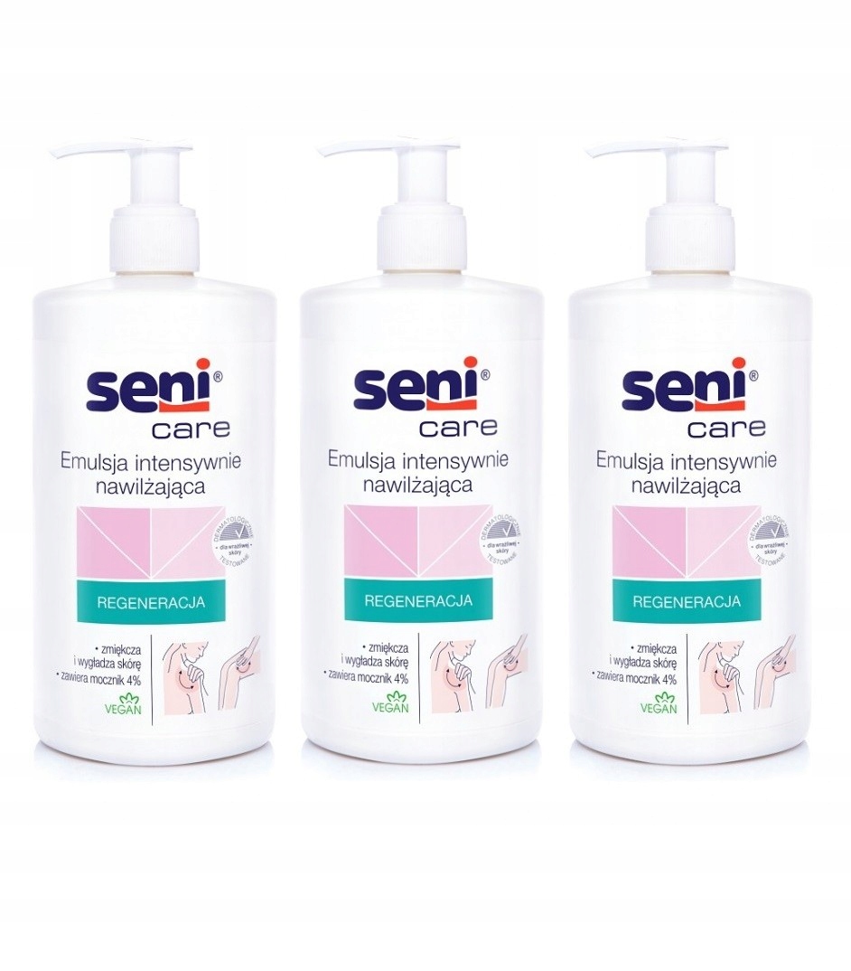 Набір містить 3 упаковки зволожуючої емульсії Seni Care по 500 мл кожна