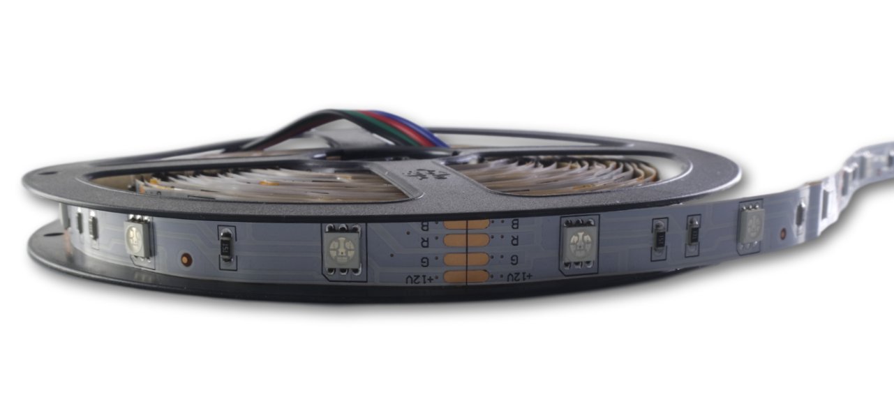 - Багатобарвність - кольоровий світлодіод може світити будь-яким кольором - червоний, синій, зелений, суміш цих кольорів і холодного білого. Білий колір у RGB-стрічках отримується шляхом змішування червоного, зеленого та синього шляхом натискання W або білої кнопки на пульті дистанційного керування.