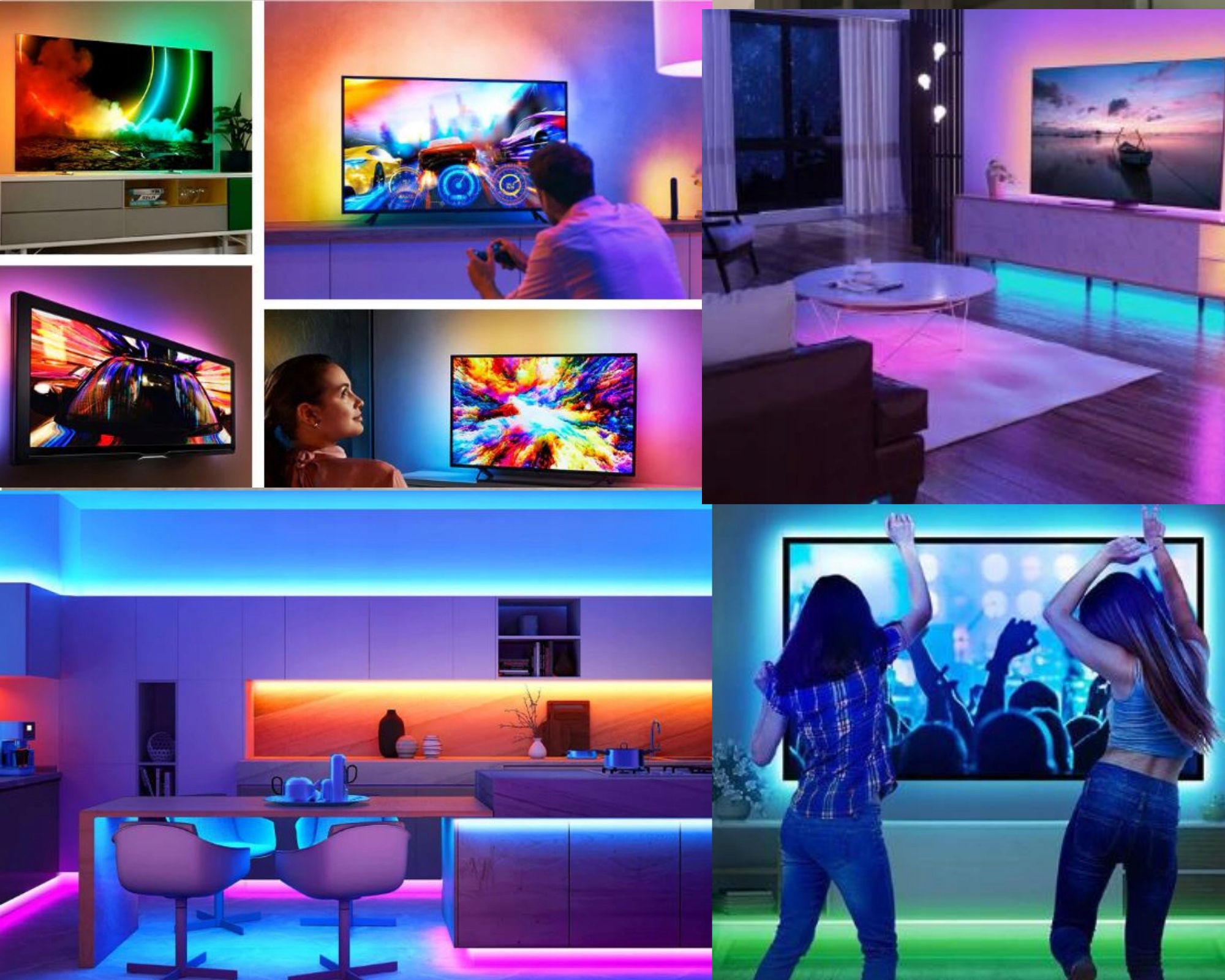 Ідеально підходить для підсвічування телевізора, комп'ютера (тюнінг), робочого столу або як підсвічування жіночого туалетного столика.