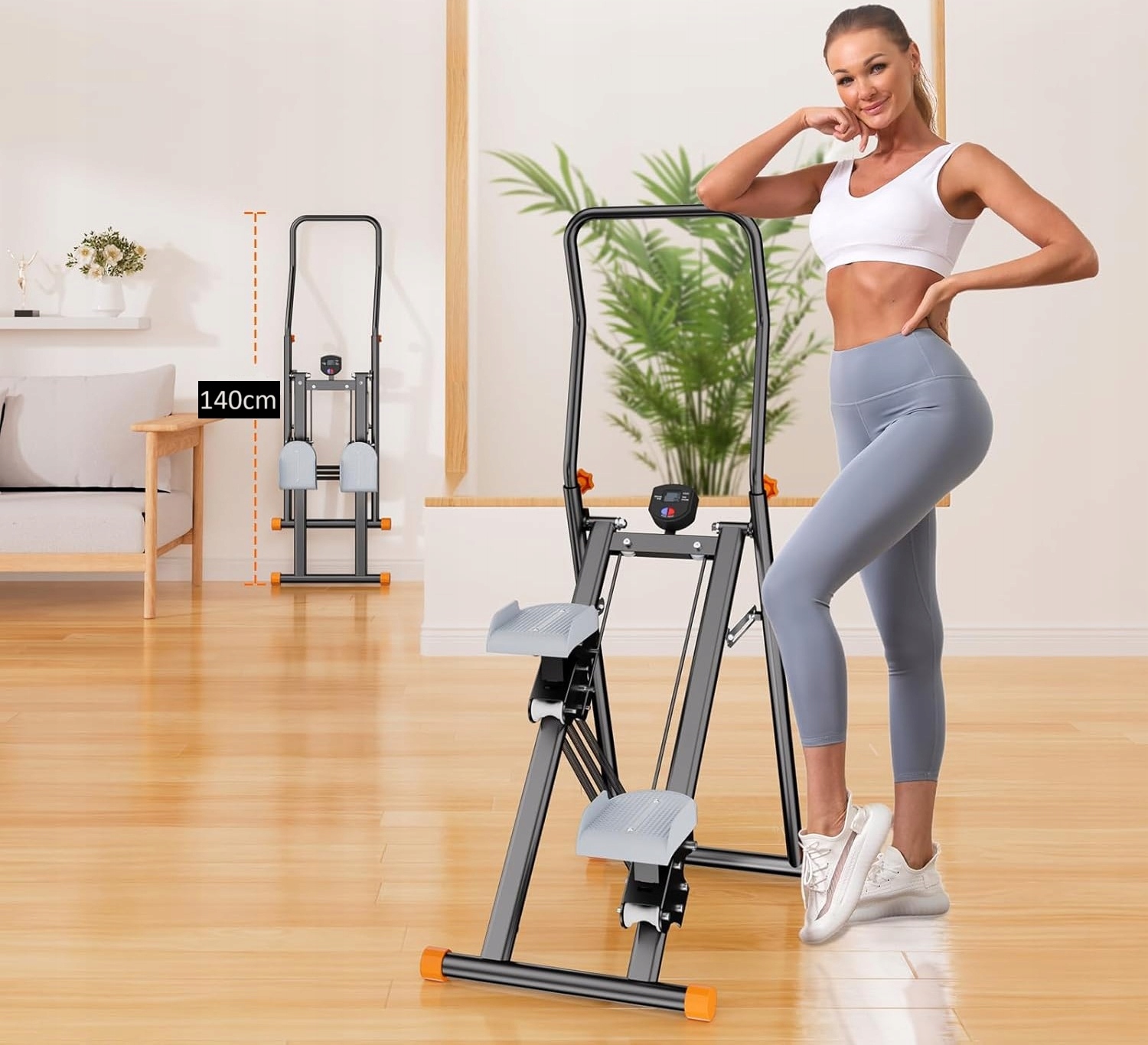 Навчальна машина для сходів складається, її можна скласти і розповсюджувати всього за 30 секунд, його можна складати до розміру 5 х 18 х 48 х 140 см і легко зберігати, що ідеально підходить для домашнього тренажерного залу або малого простору.