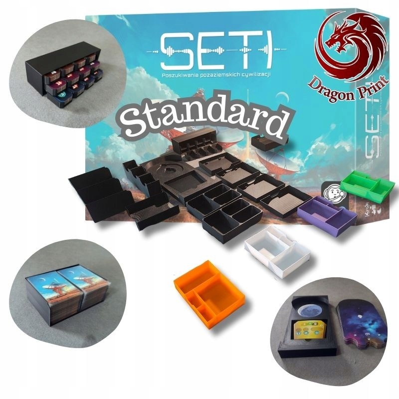 вставка seti - чудове рішення для кожного шанувальника цієї унікальної стратегічної гри. розмістить усі елементи гри, включаючи картки в преміум -сорочках , і в той же час вписується в оригінальну коробку і не піднімає обкладинку . Завдяки цьому, гру може бути збережена вертикально , без ризику розсіювання компонентів. Вставка складається з 16 виділених контейнерів , що гарантує відмінну організацію всіх елементів гри. На відміну від конкурентних продуктів , контейнери гравців оснащені обкладинками та окремими розділами , що полегшує доступ до компонентів і дозволяє більш зручну підготовку до гри.