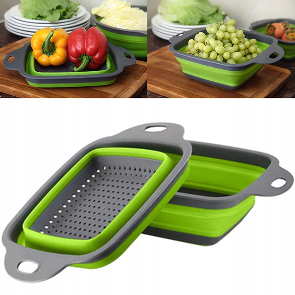 СКЛАДНИЙ СИЛІКОНОВИЙ ПРЯМОКУТНИЙ ДРУШЛЯК, СИТО, ДРУШЛЯК, ДРЕНАЖ З РУЧКАМИ