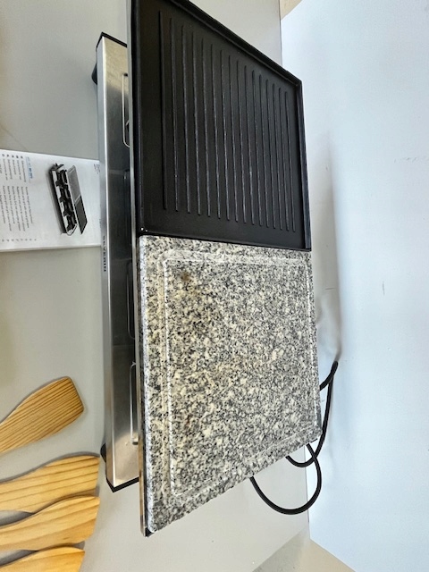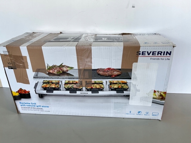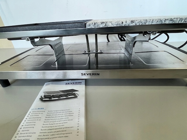 - Комплектація: Раклет-гриль SEVERIN з натуральним гриль-каменем і пластиною для гриля, раклет з антипригарним покриттям, настільний гриль на 8 осіб, макс. 1700 Вт, нержавіюча сталь/чорний, RG 2373
