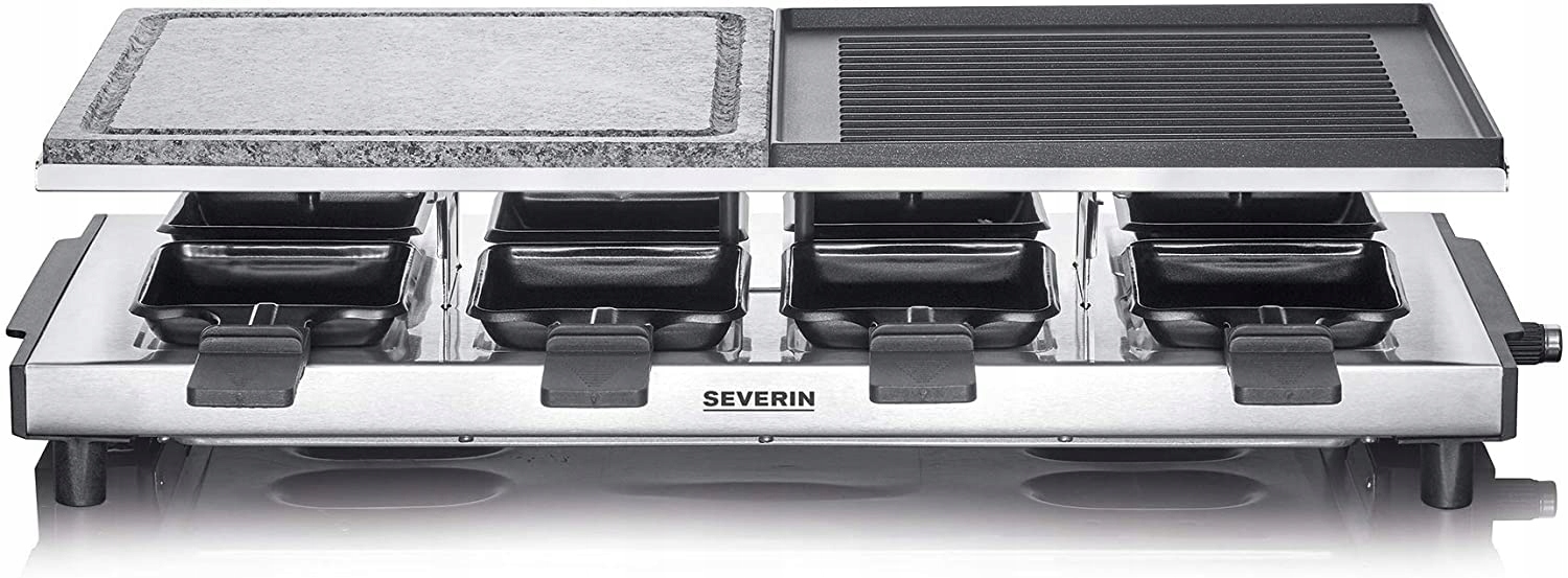 - Основна точка: з натуральним гриль-каменем, ідеальний результат гриля, з раклет-грилем Severin ви можете оснастити 8 смачних сковорідок і готувати овочі чи м’ясо на грилі, покриття продукту антипригарне.