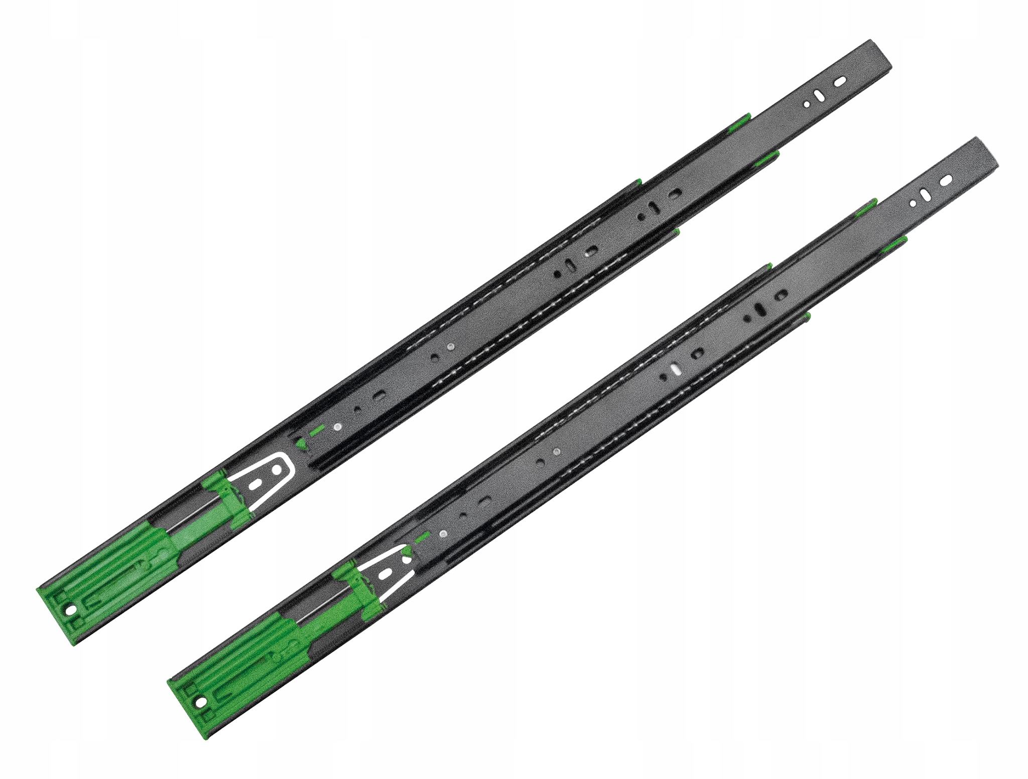 Кульова направляюча з м'яким закриттям дозволяє побудувати як стандартні, так і внутрішні ящики. Розроблений для ящиків, виготовлених з дерева або ДСП, він також використовується в шафах та шафах. Завдяки функції повного розширення він забезпечує зручний доступ до всього вмісту ящика. Крім того, він оснащений можливістю видалення посібника з посібника. Продукт характеризується високою міцністю - сертифікованою на 60 000 циклів і витримує навантаження до 30 кг. Доступно в довжині від 250 до 550 мм, у чорному кольорі.