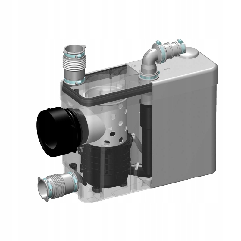 Sanipack є поставляється зі зворотним клапаном, аксесуарами для монтажу та вугільним фільтром для нейтралізації неприємних запахів.