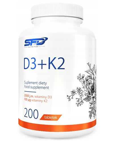SFD D3 + K2 – дієтична добавка, що містить вітаміни D3 і K2 (менахінон-7). Регулярне вживання вітаміну D3 сприяє правильному засвоєнню кальцію, підтримці здоров'я кісток і зубів, а також позитивно впливає на правильне функціонування м'язів і імунної системи. Вітамін K2 допомагає підтримувати міцність кісток і сприяє правильному згортанню крові. Препарат SFD D3+K2 є щоденною добавкою до раціону з вітаміном K2 і D3. Особливо рекомендується для фізично активних людей і всіх, хто хоче зберегти свої кістки здоровими та міцними.